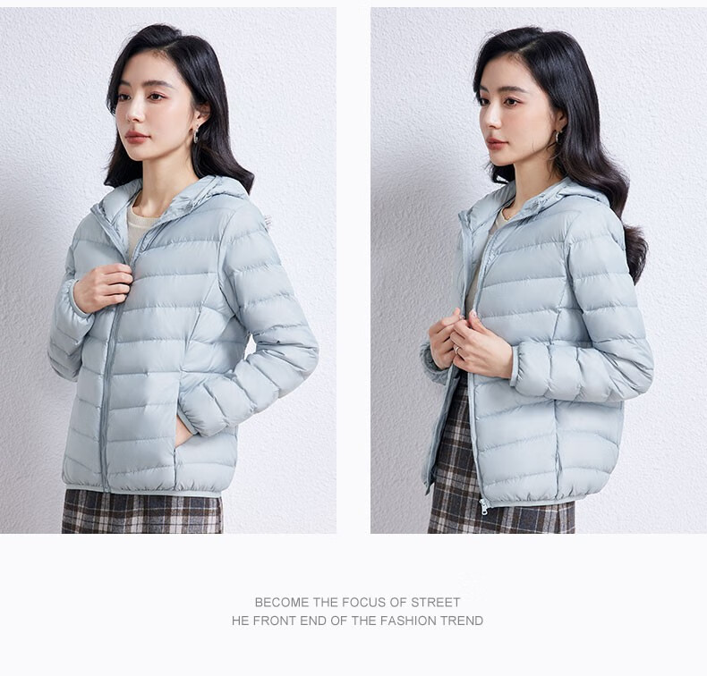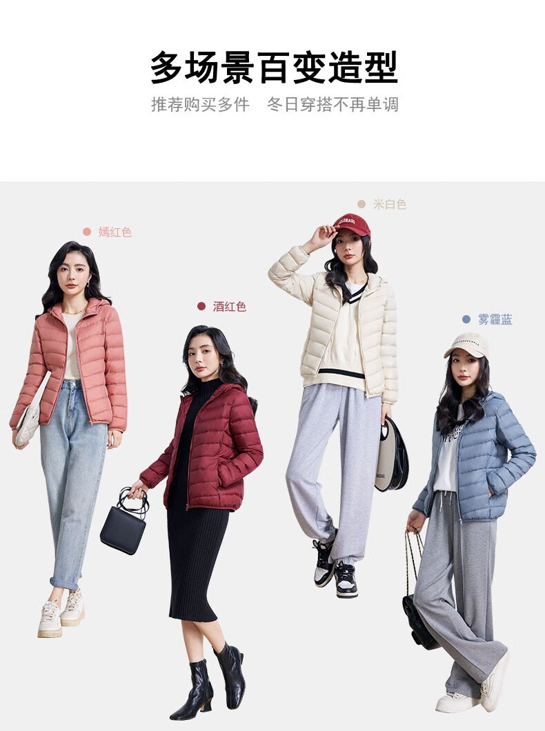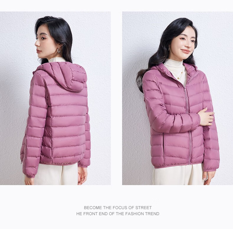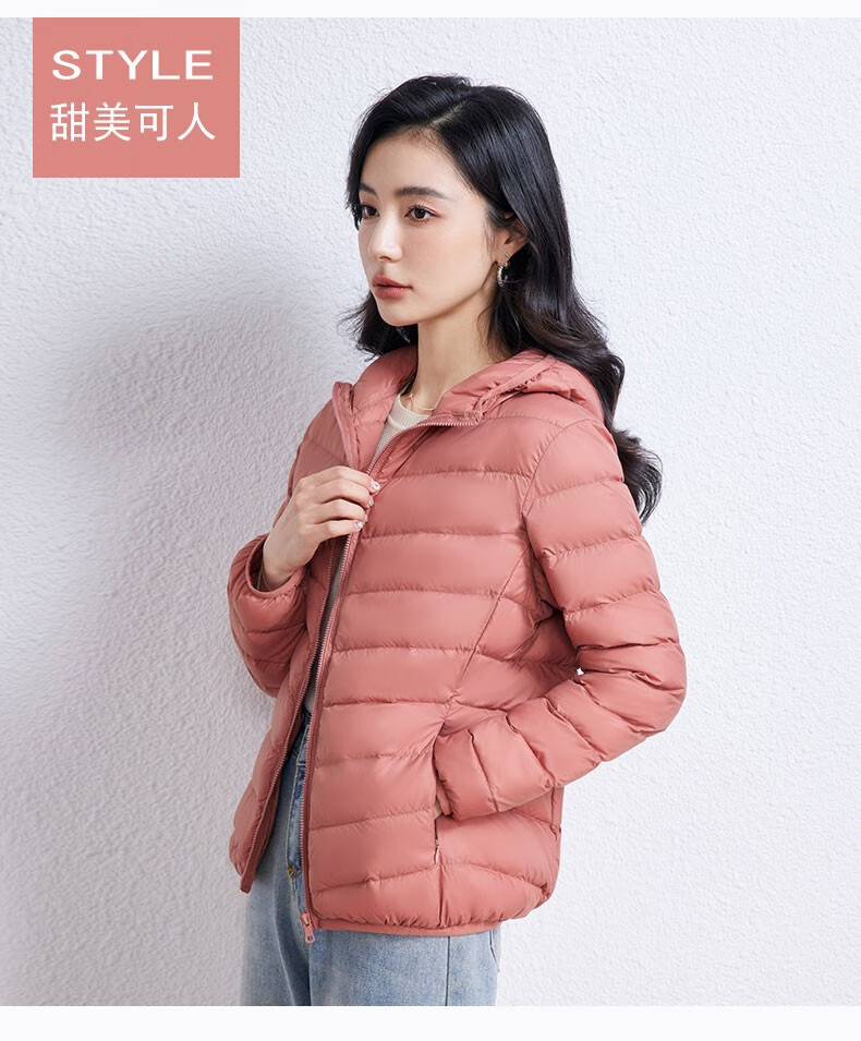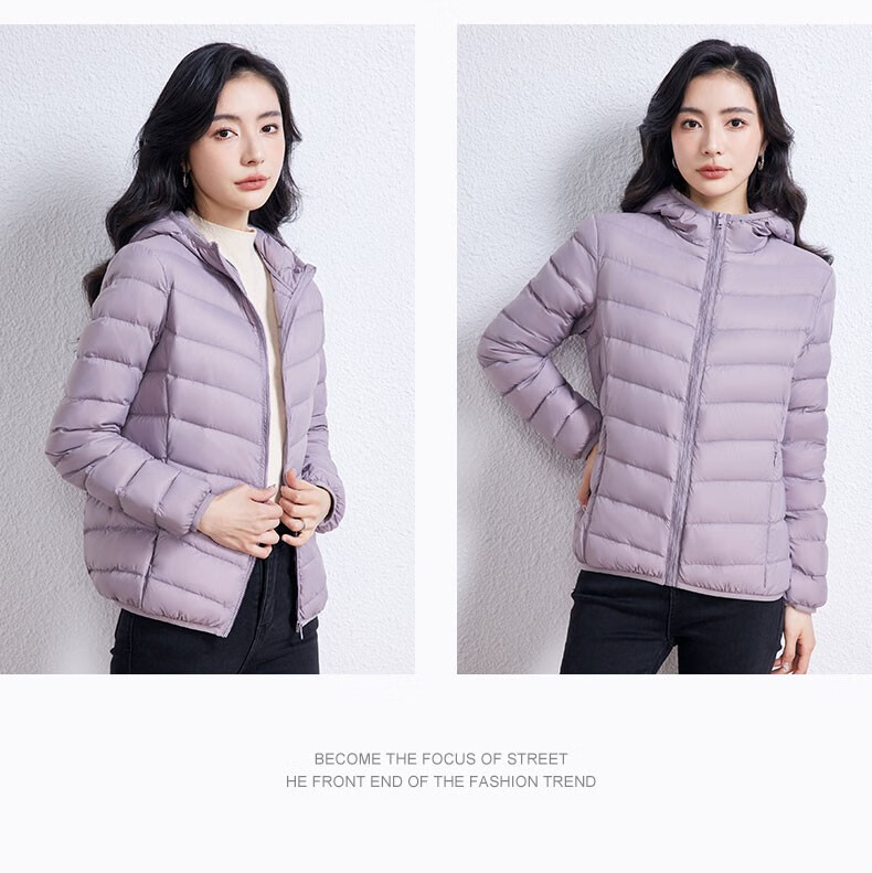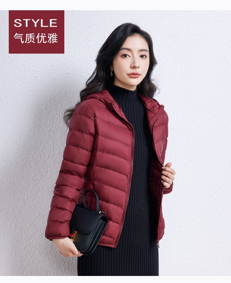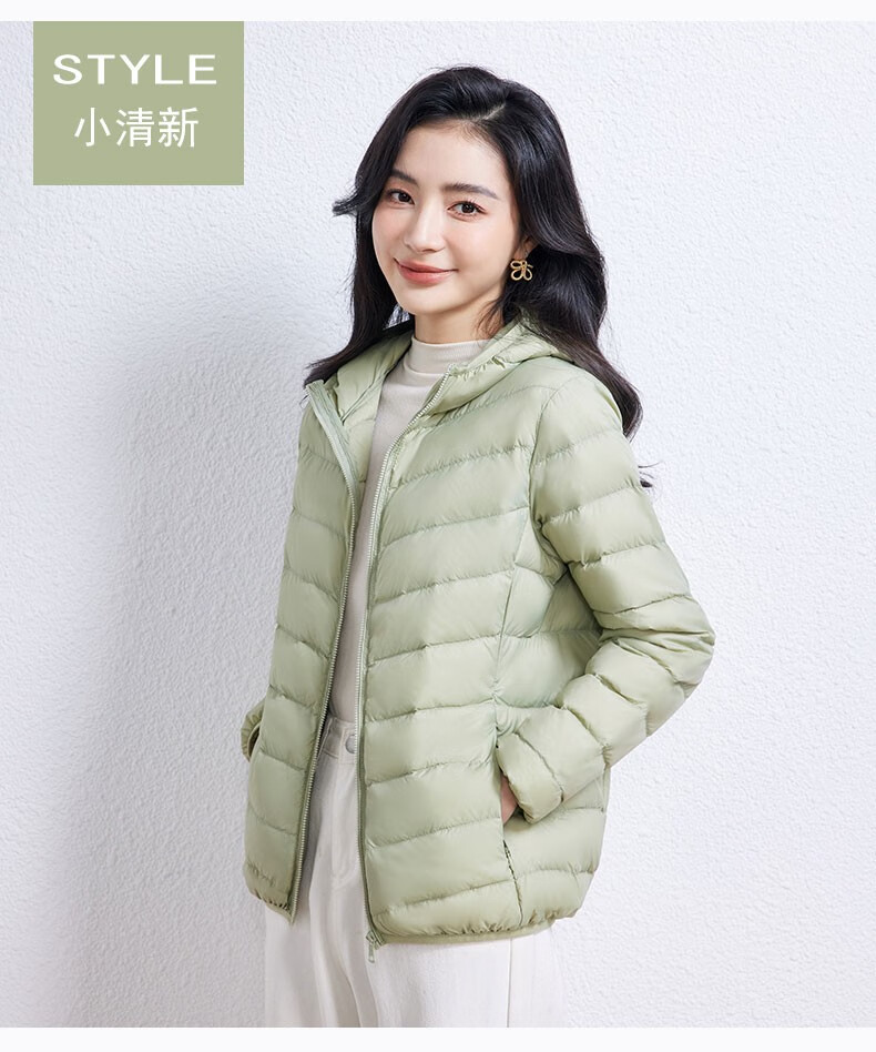 鸭鸭(YAYA)新国标轻薄款羽绒服女保暖时尚修身短款白鸭绒秋冬季连帽轻便外套