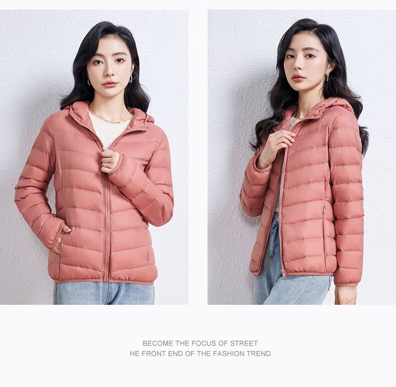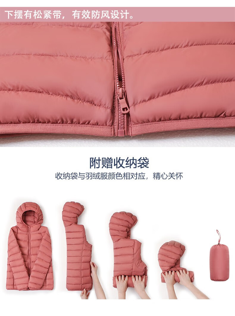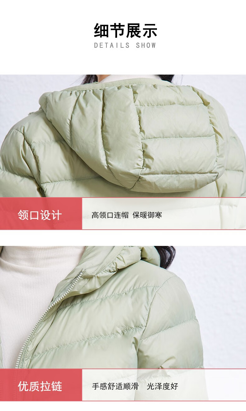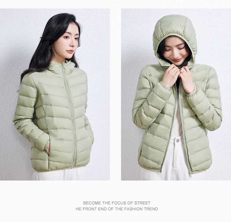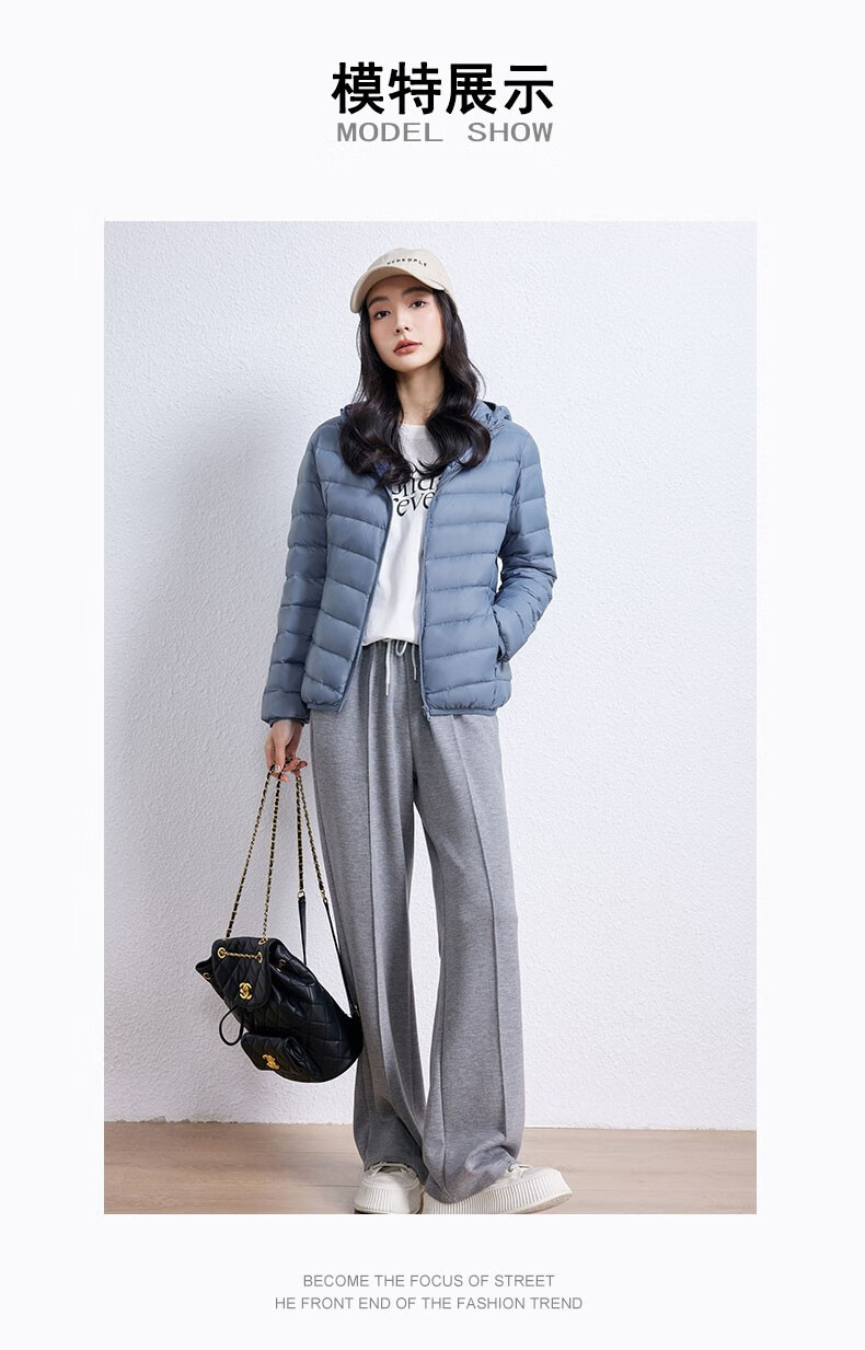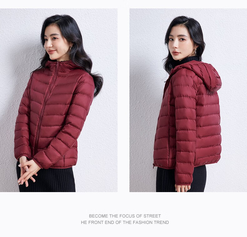 鸭鸭(YAYA)新国标轻薄款羽绒服女保暖时尚修身短款白鸭绒秋冬季连帽轻便外套