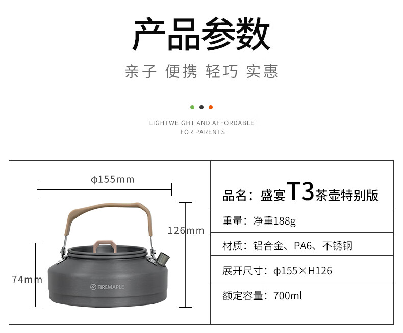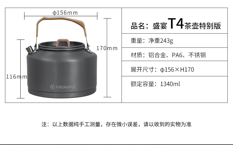 火枫(FIRE-MAPLE)T4茶壶特别版 单壶户外露营装备野外烧水煮茶壶 煮咖啡器具(1.3L)