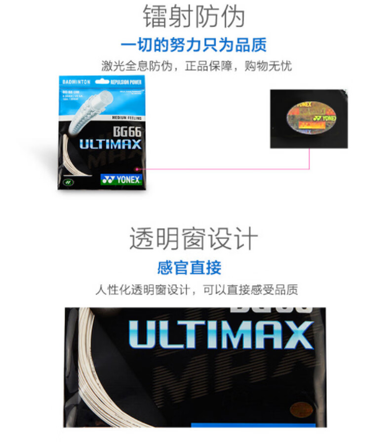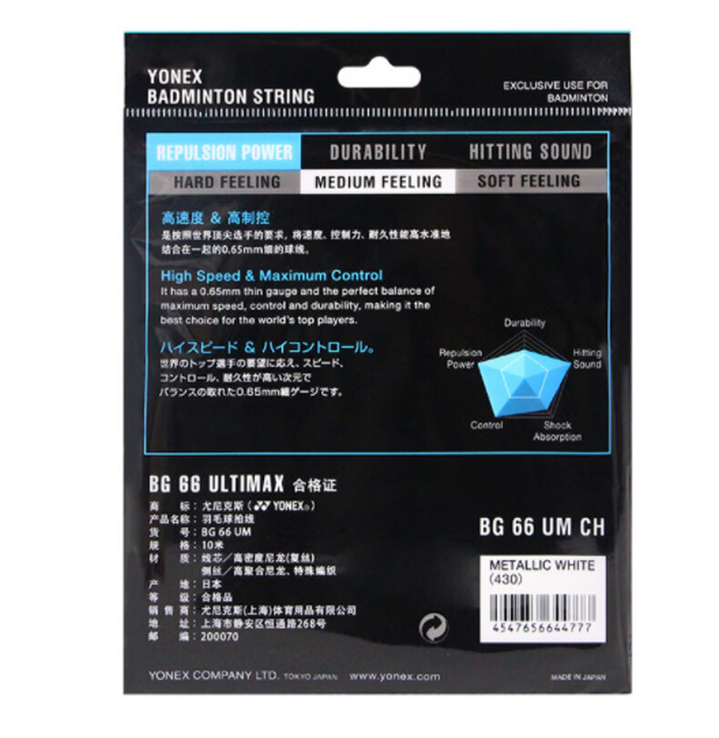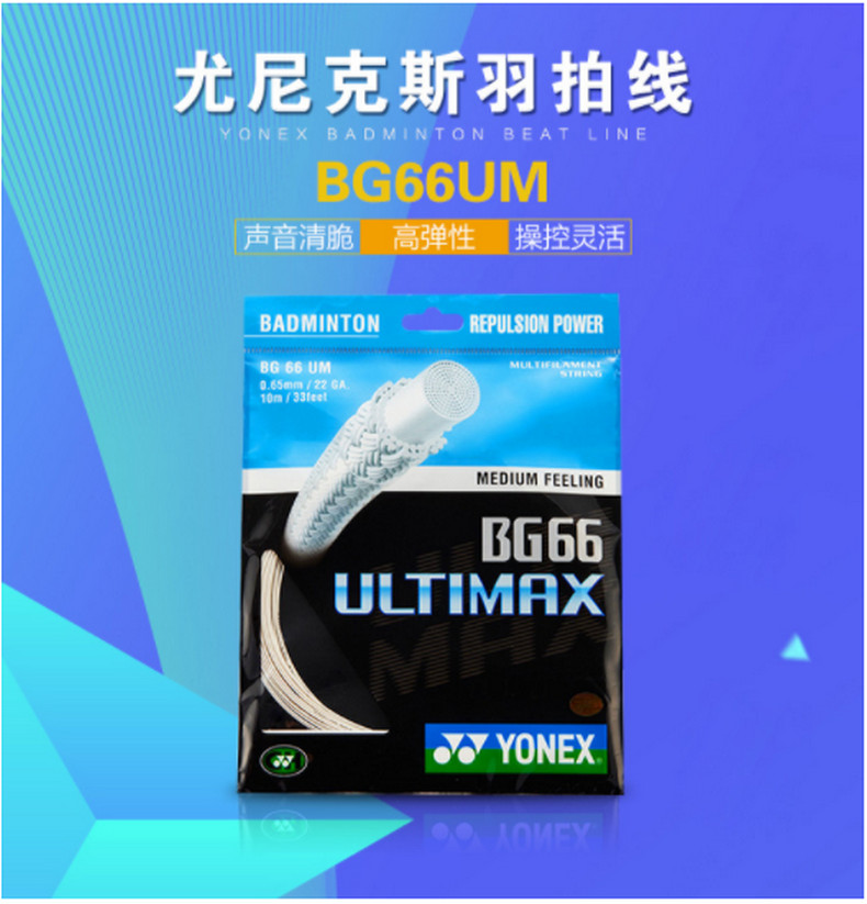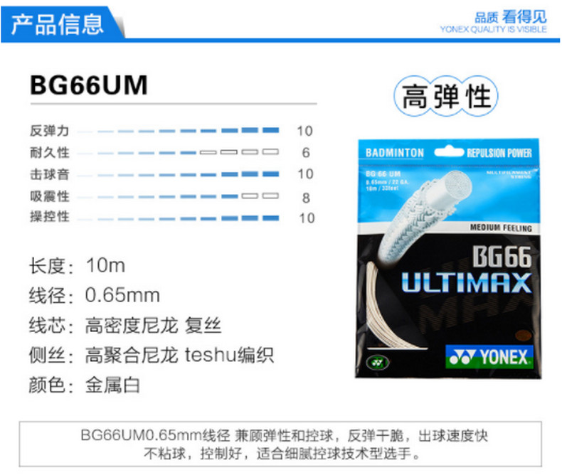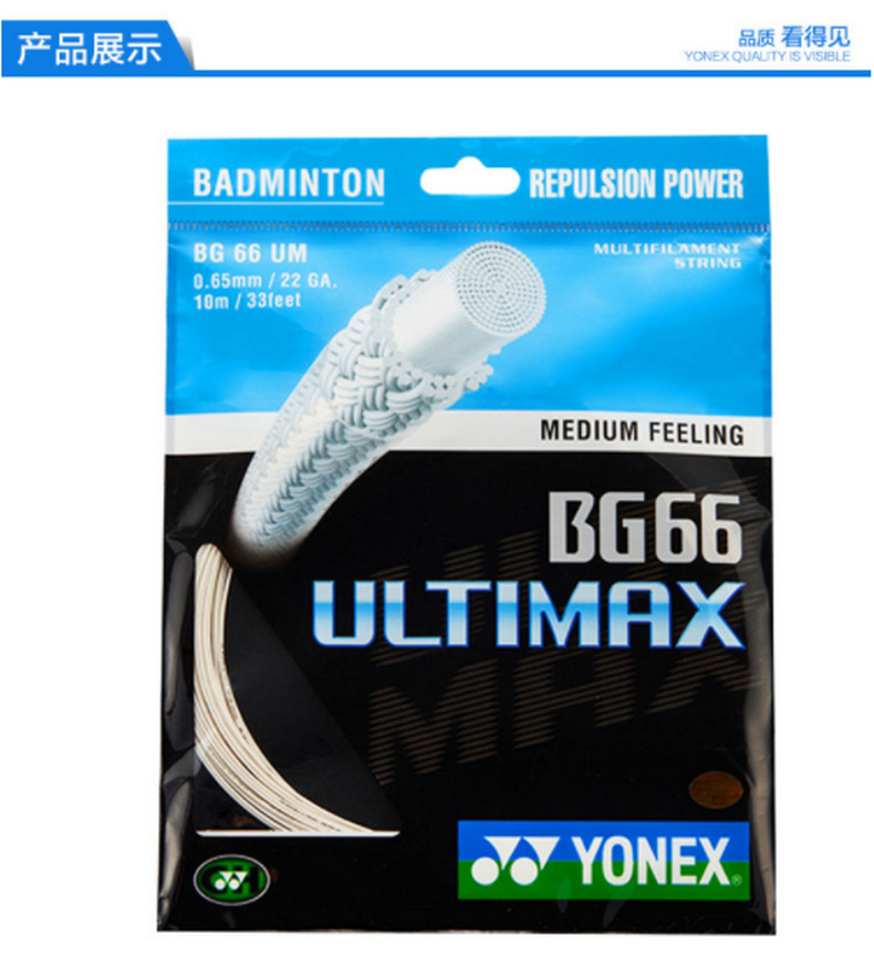 YONEX尤尼克斯羽毛球拍线yy日本进口高弹性速度型羽线BG66UM 超薄线径适合扣杀和控球 金属白