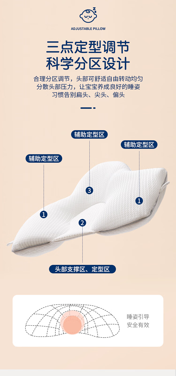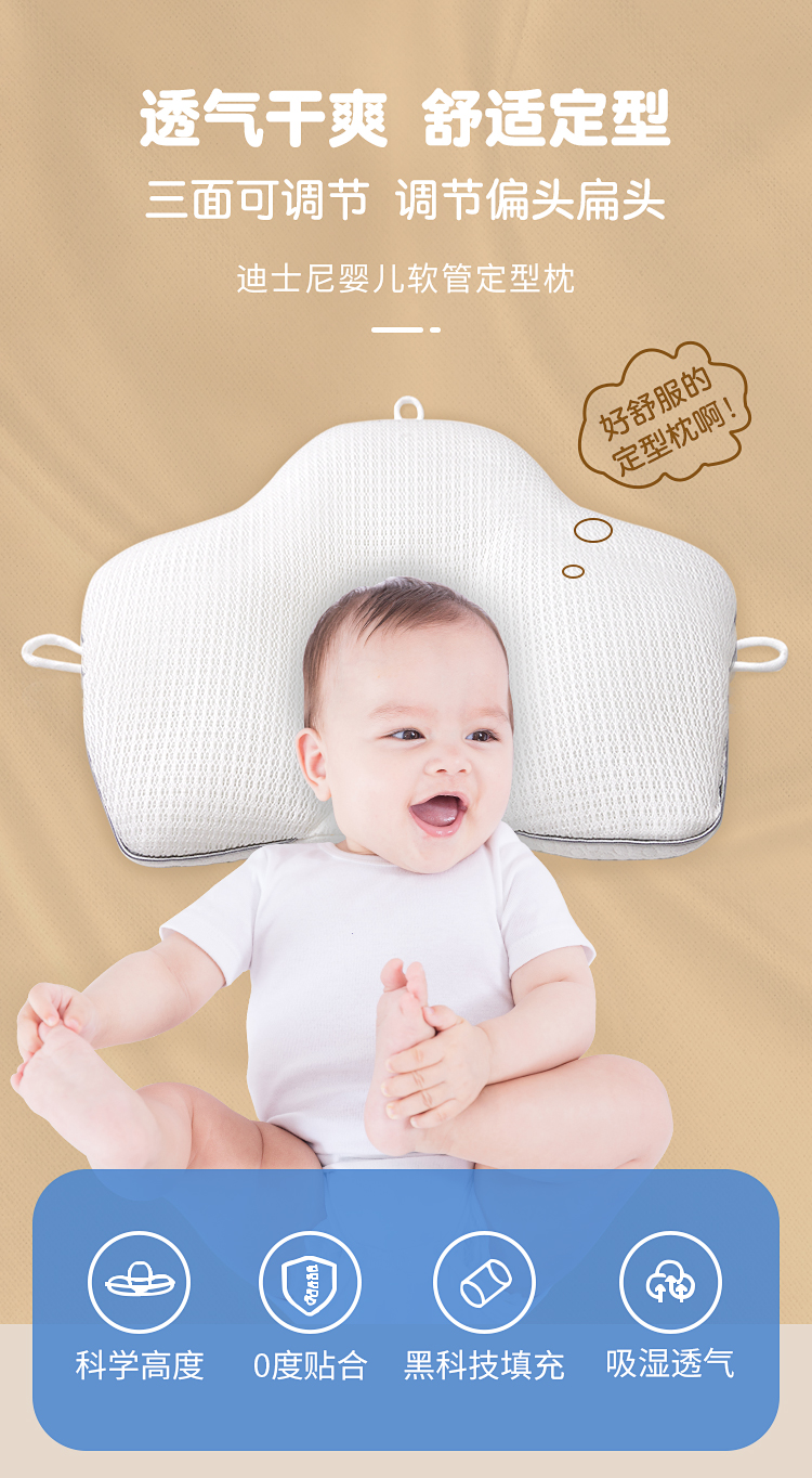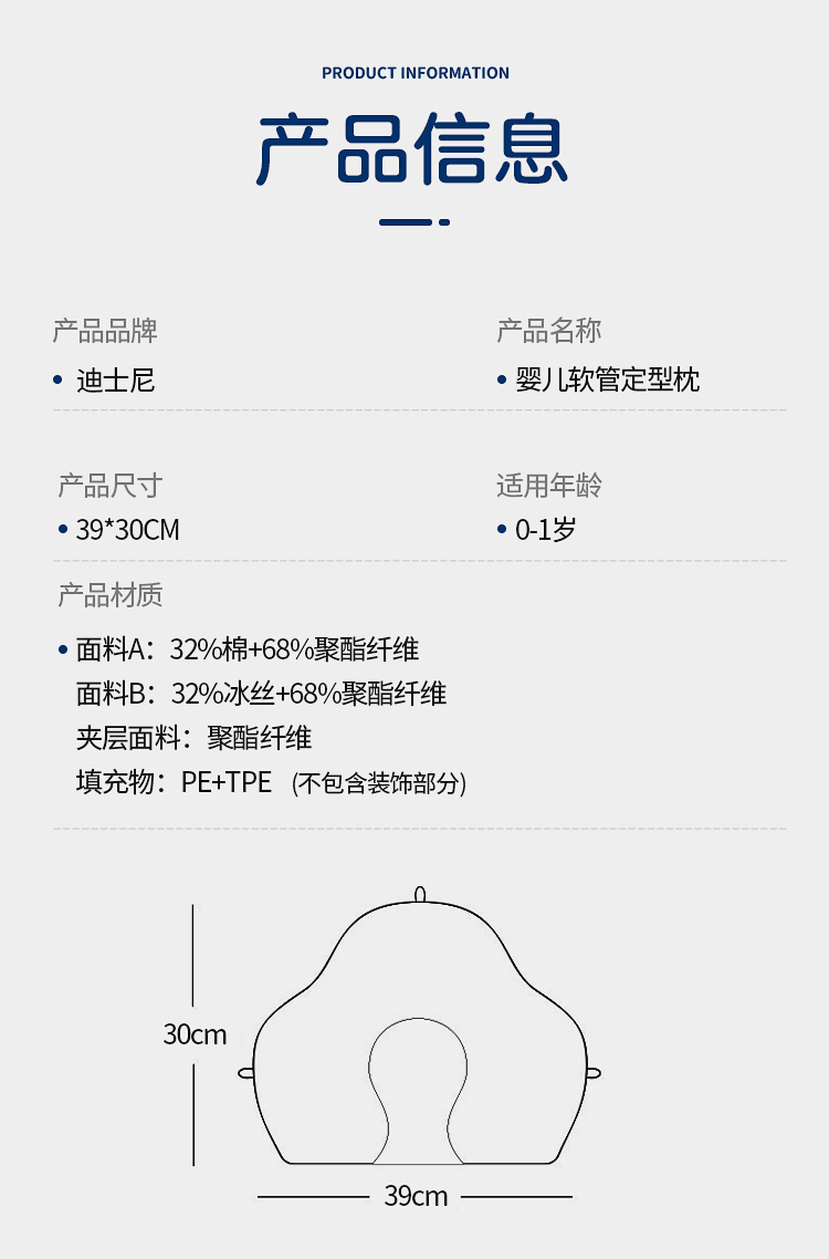 迪士尼(Disney)婴儿枕头定型枕 0-1-3岁新生儿宝宝头型调节枕纠正护型软管枕四季通用吸汗透气可水洗 礼盒装