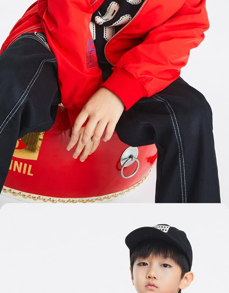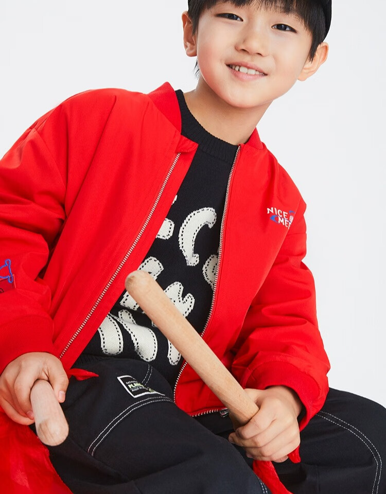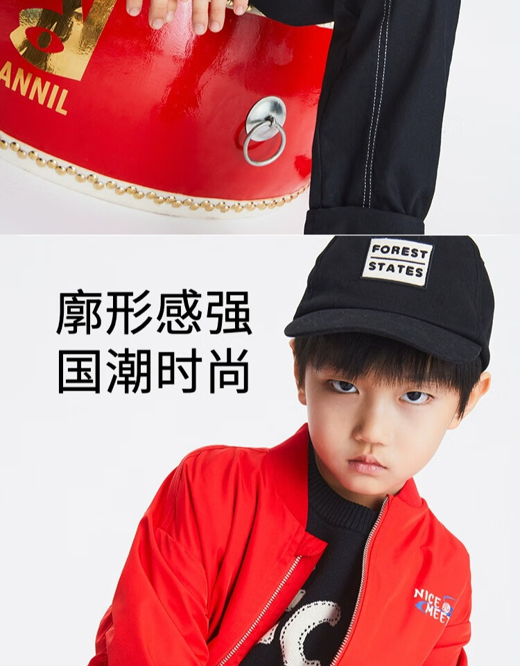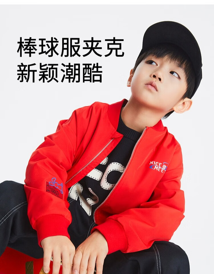 安奈儿(Annil)安奈儿童装男童夹克外套2023年春装国风印花棒球服上衣黑色120