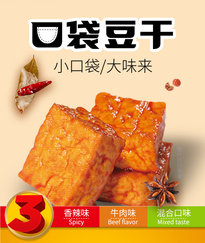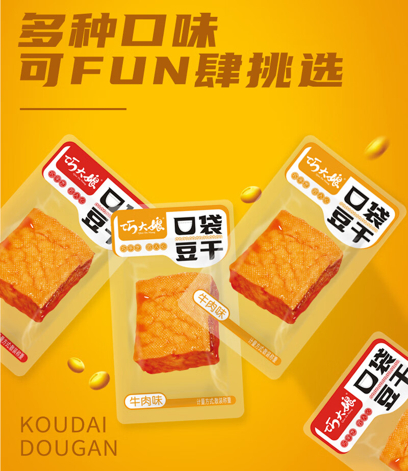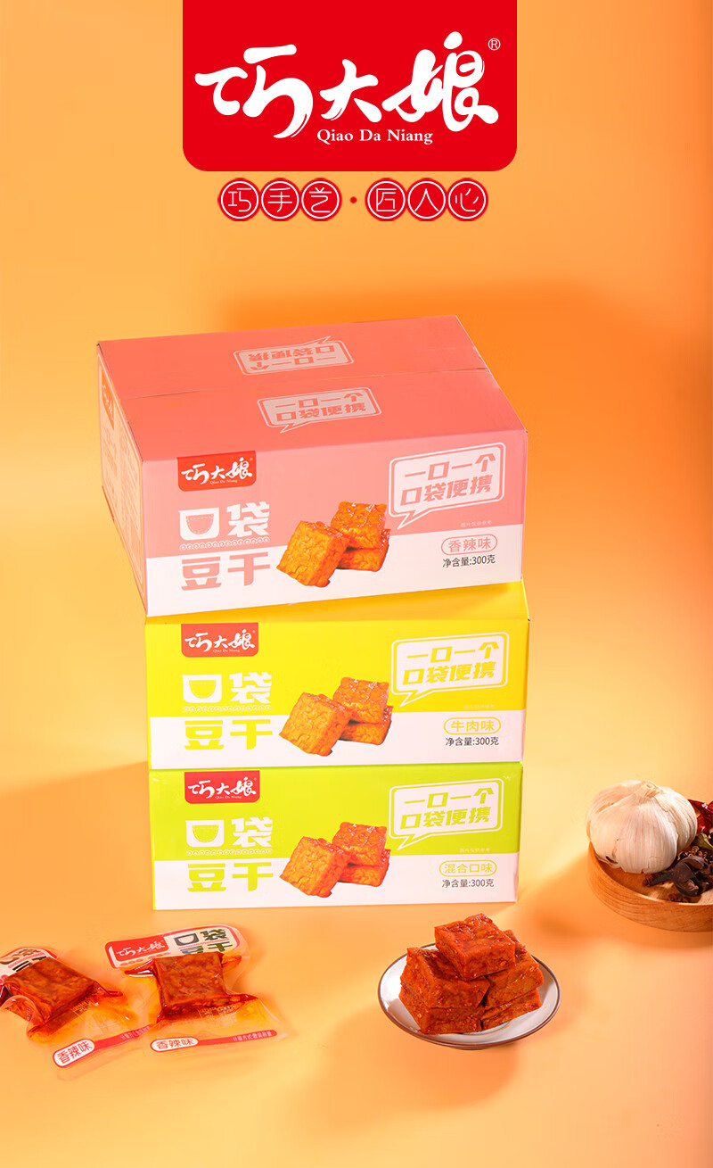 巧大娘休闲零食豆干辣条便携小包装小吃豆腐干口袋豆干香辣味300克/盒