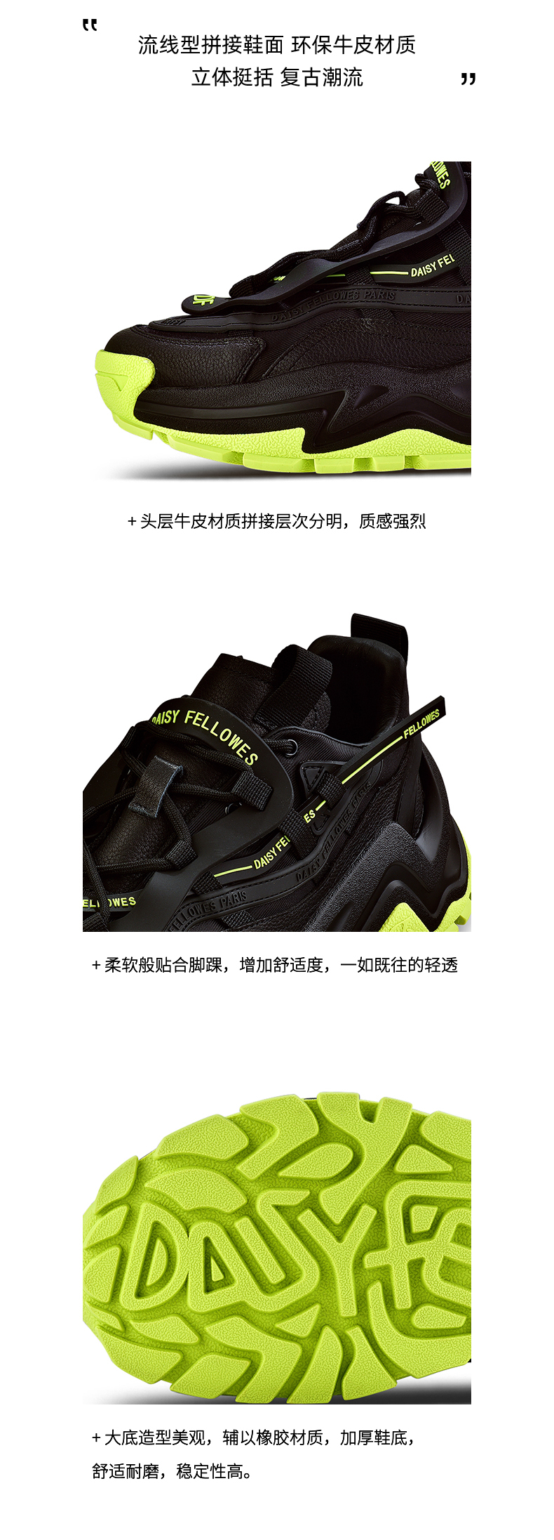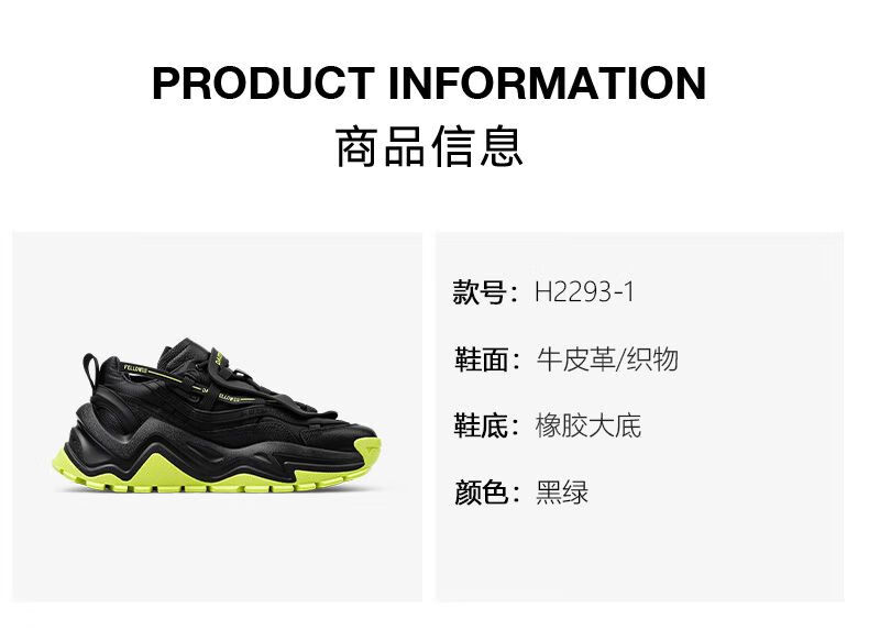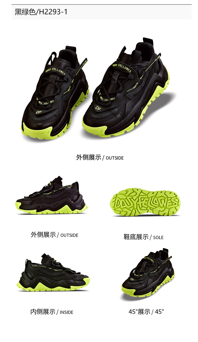 Daisy Fellowes黛西法罗魔鬼一号男鞋老爹鞋情侣款时尚休闲运动鞋 黑绿色35码