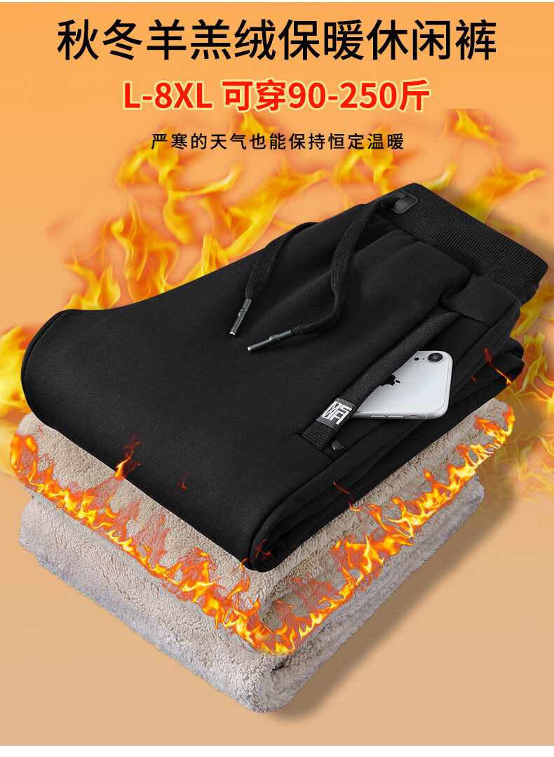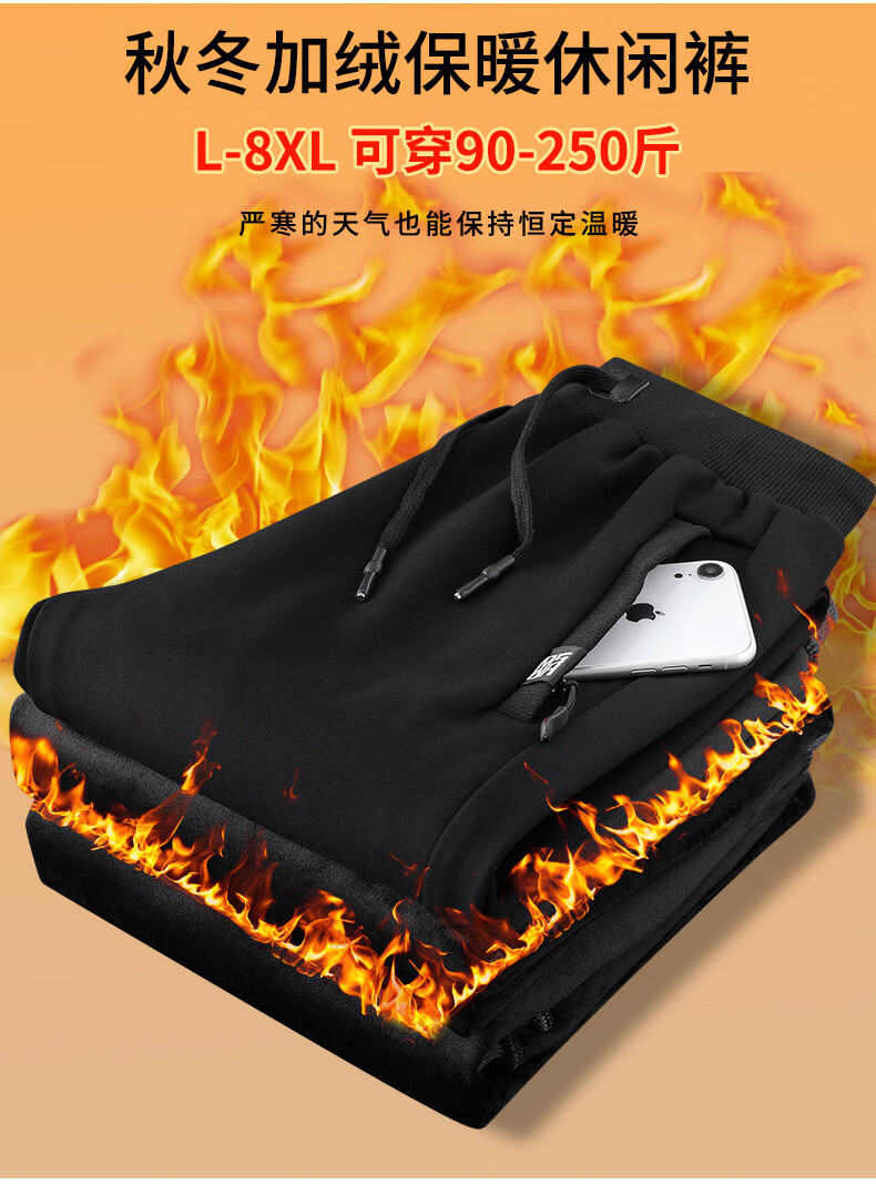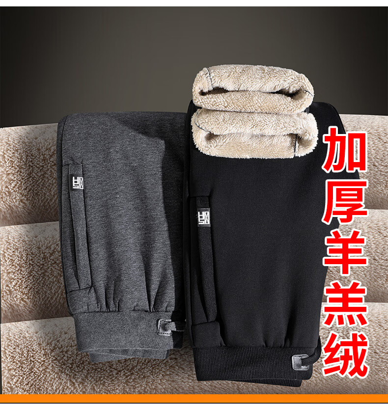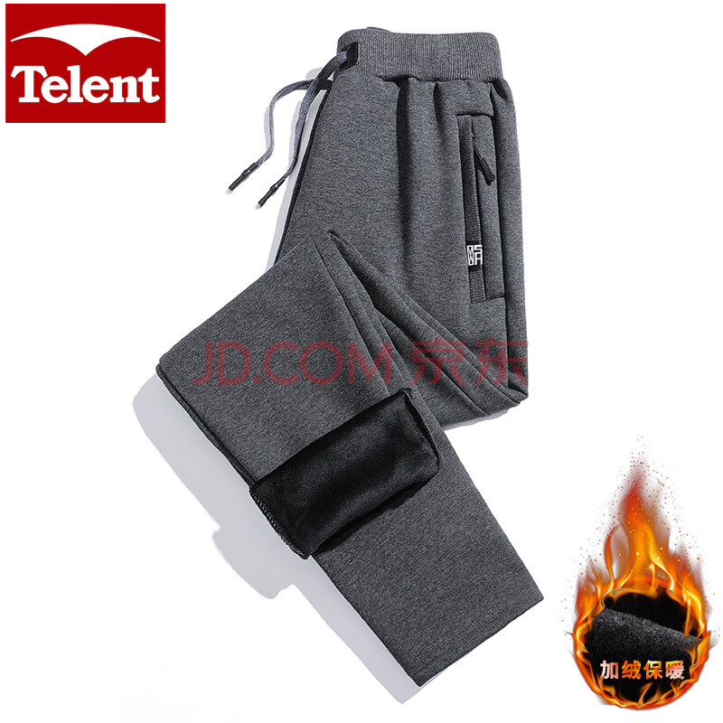天伦天(Telent)运动裤男裤子冬季男加绒裤羊羔绒裤 灰色直筒-银狐绒 4XL