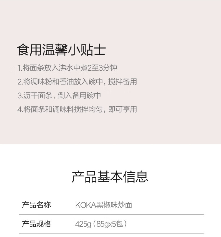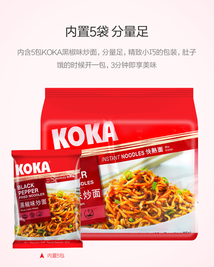 KOKA 可口方便面 黑椒炒面快熟泡面 85g*5 新加坡进口