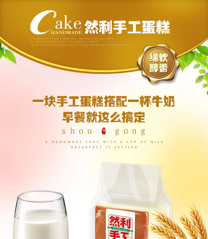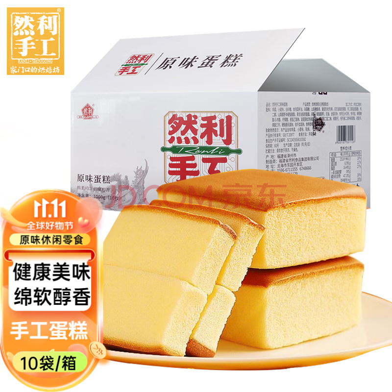 然利(RANLI)手工蛋糕1000g整箱 原味 早餐蛋糕点面包 休闲零食