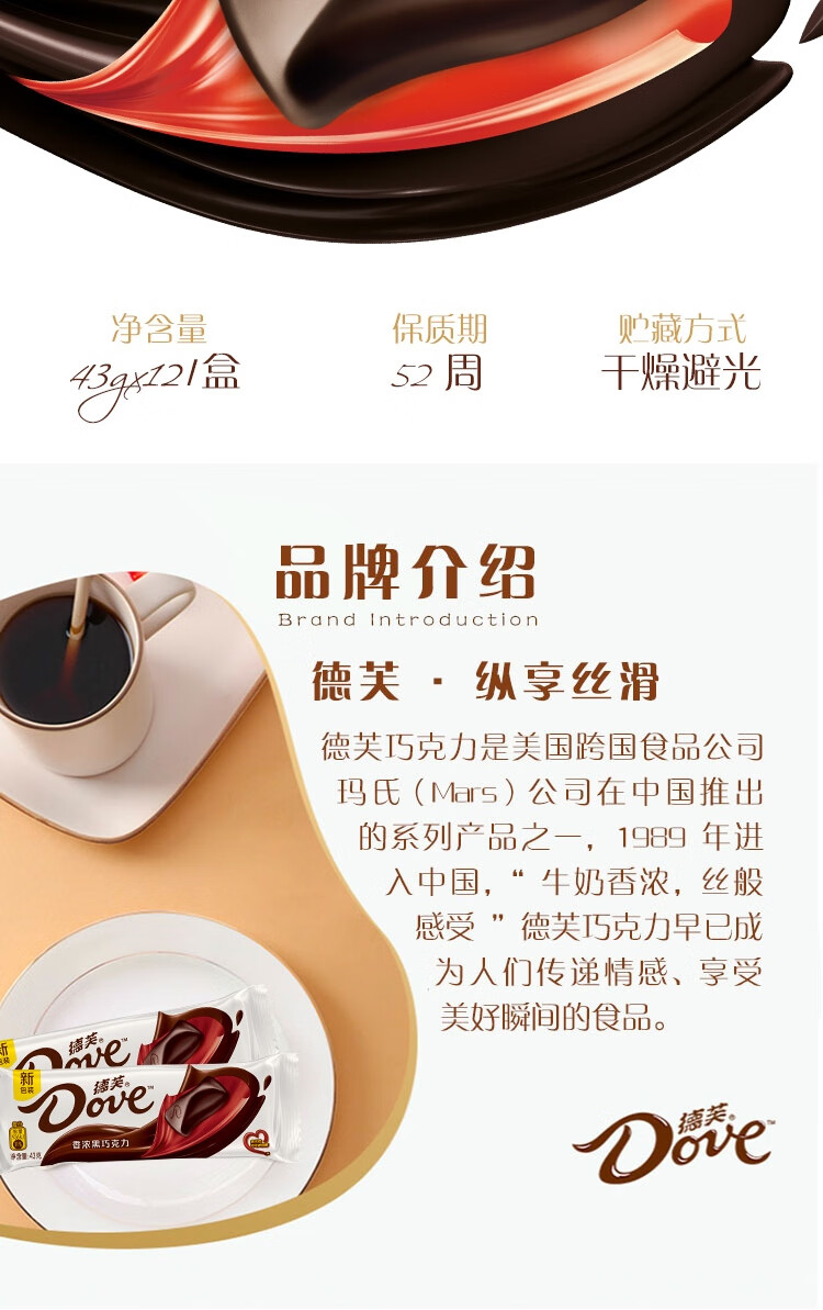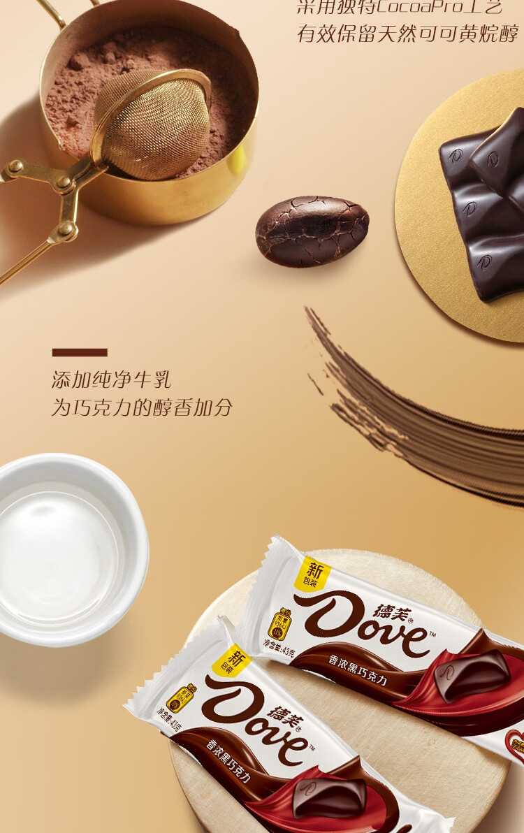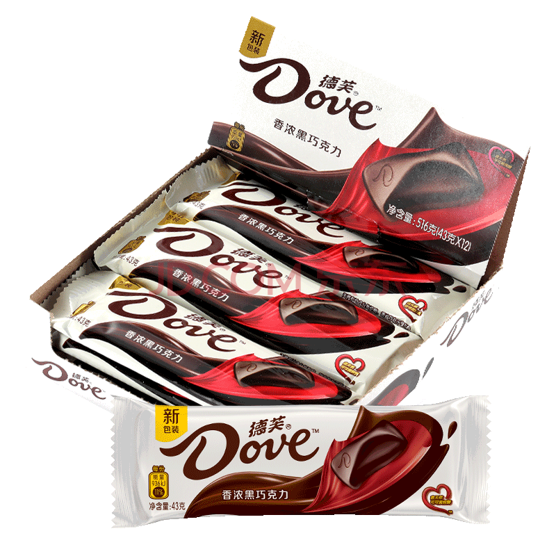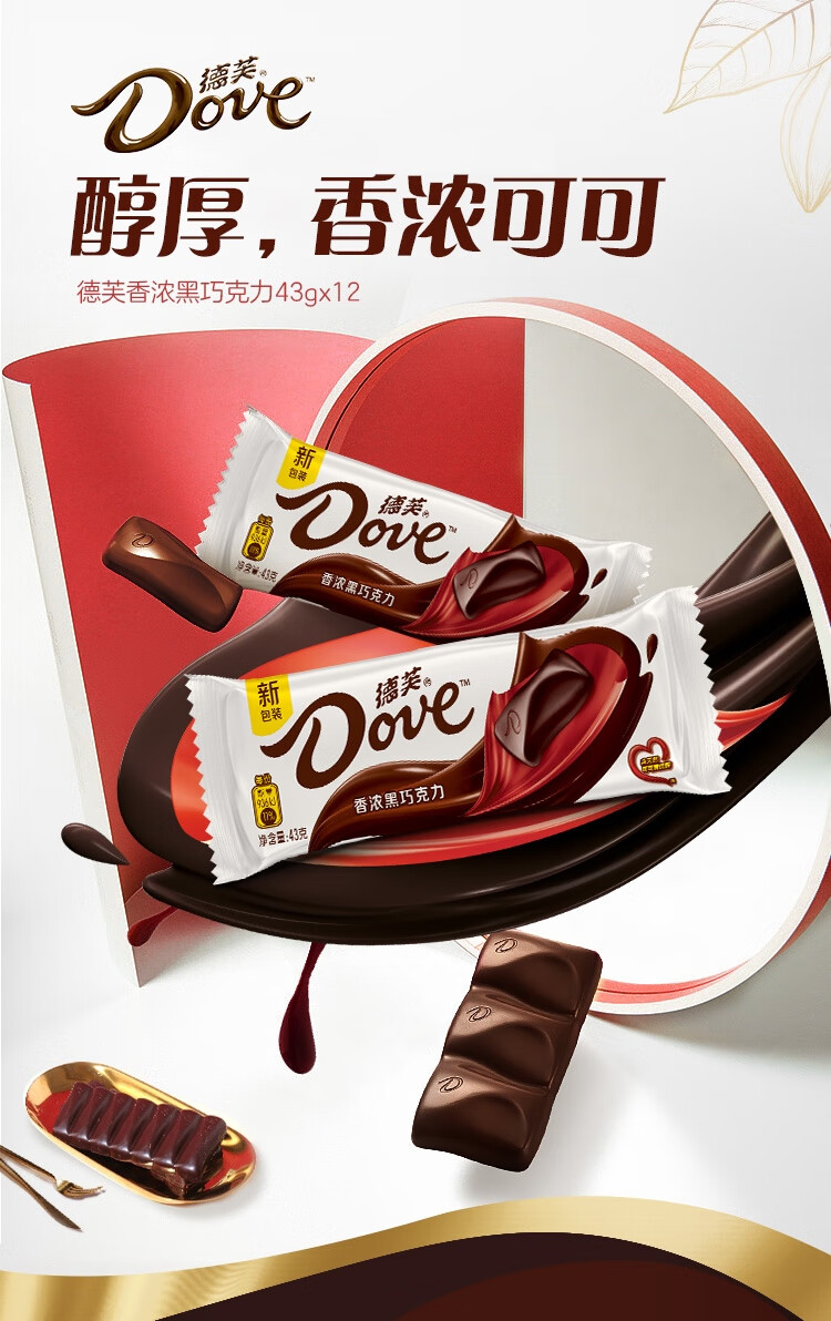德芙(Dove)香浓黑巧克力43g*12共516g休闲小零食糖果礼物