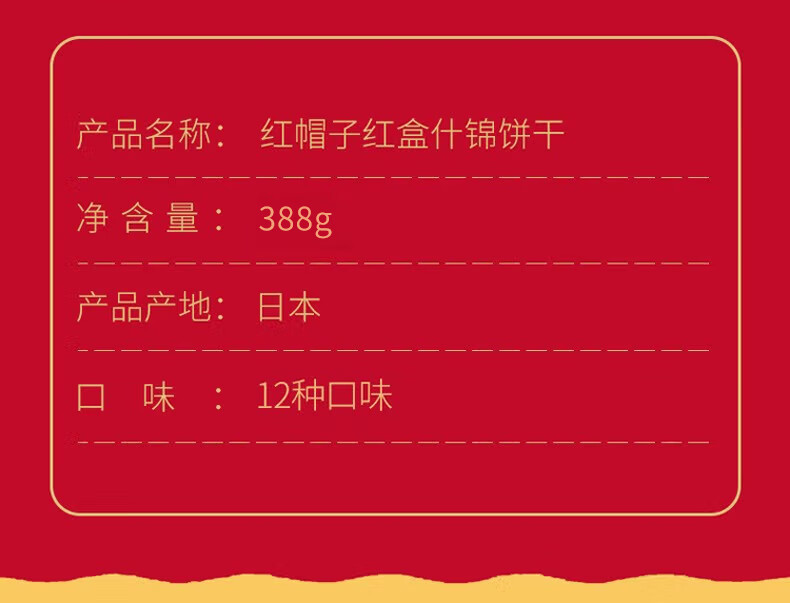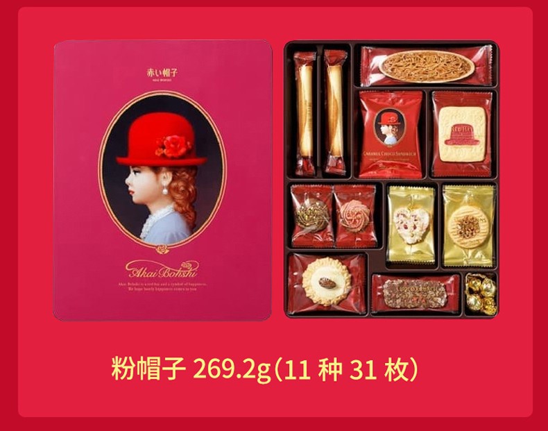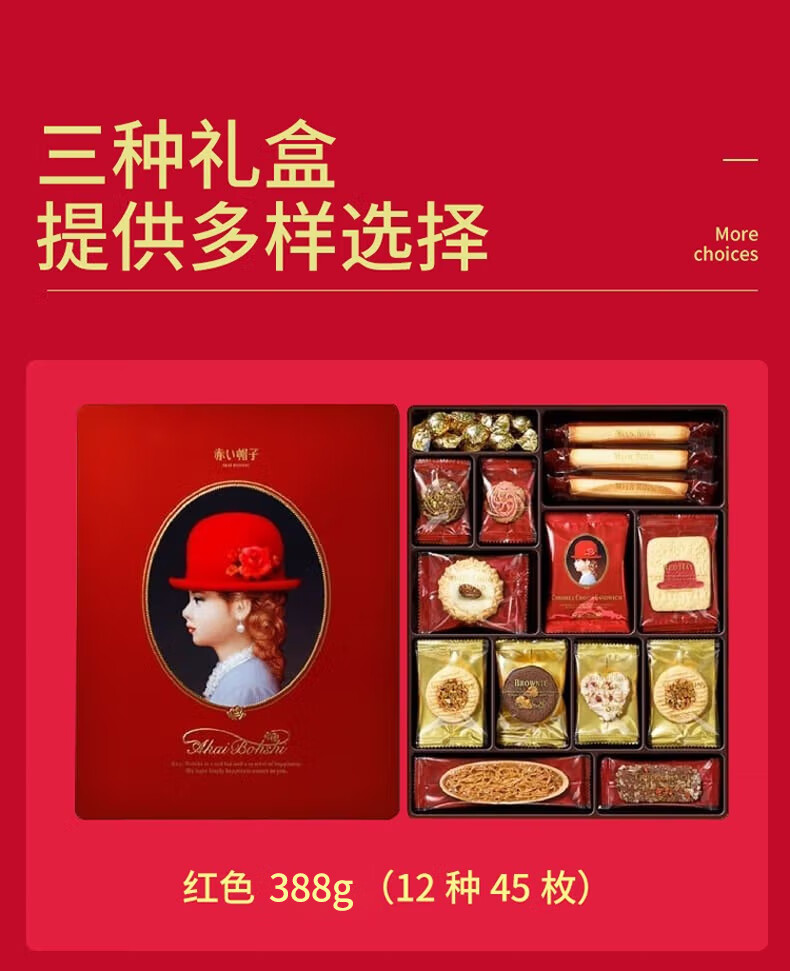 红帽子曲奇什锦饼干礼盒 日本进口赤帽子节日礼物 388g 1号会员店