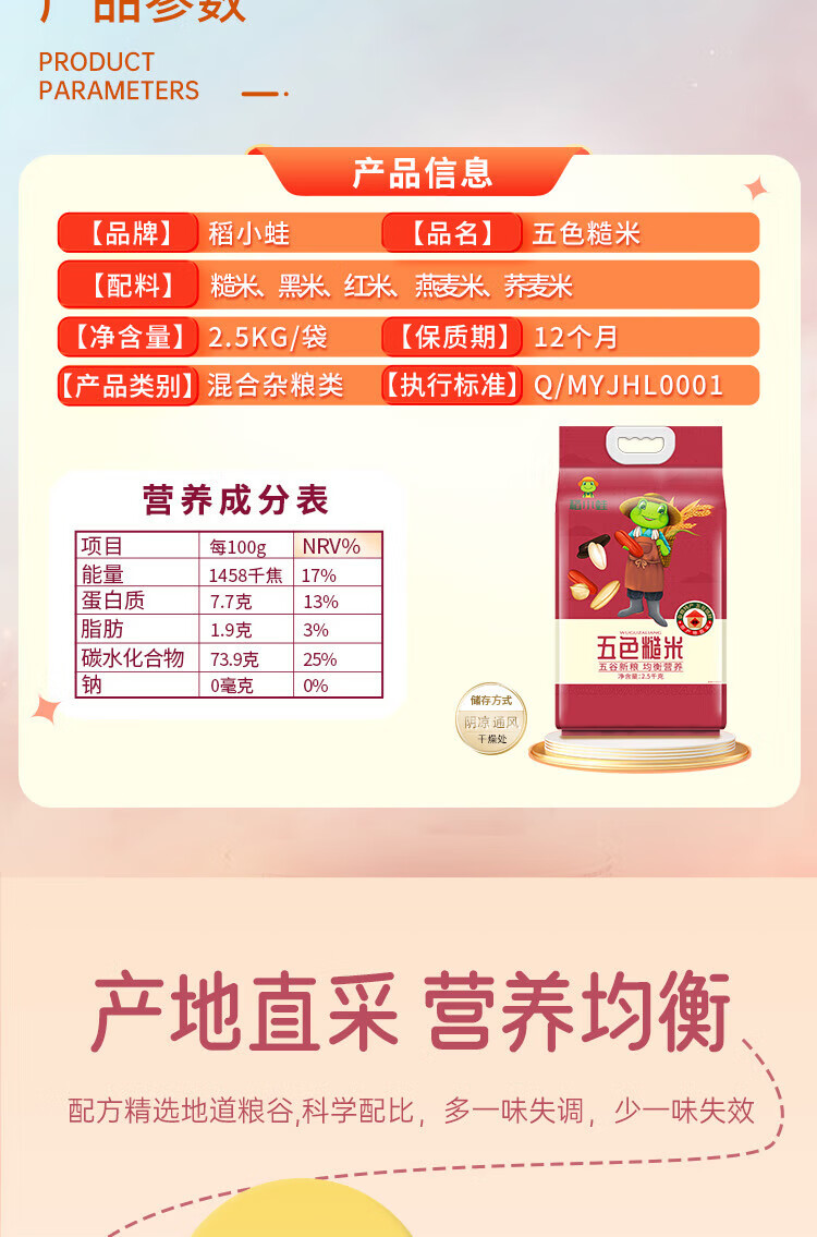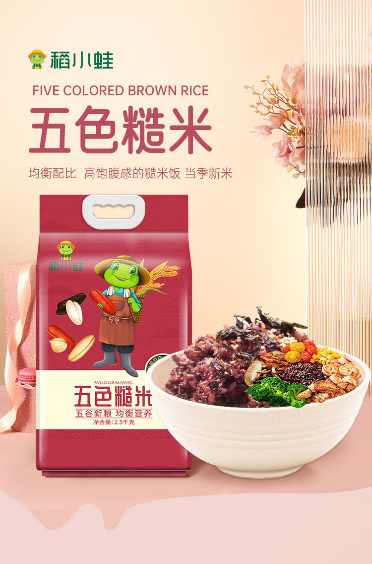 稻小蛙五色糙米杂粮粗粮 2.5kg 黑米 红米 燕麦米 荞麦米 五谷杂粮米