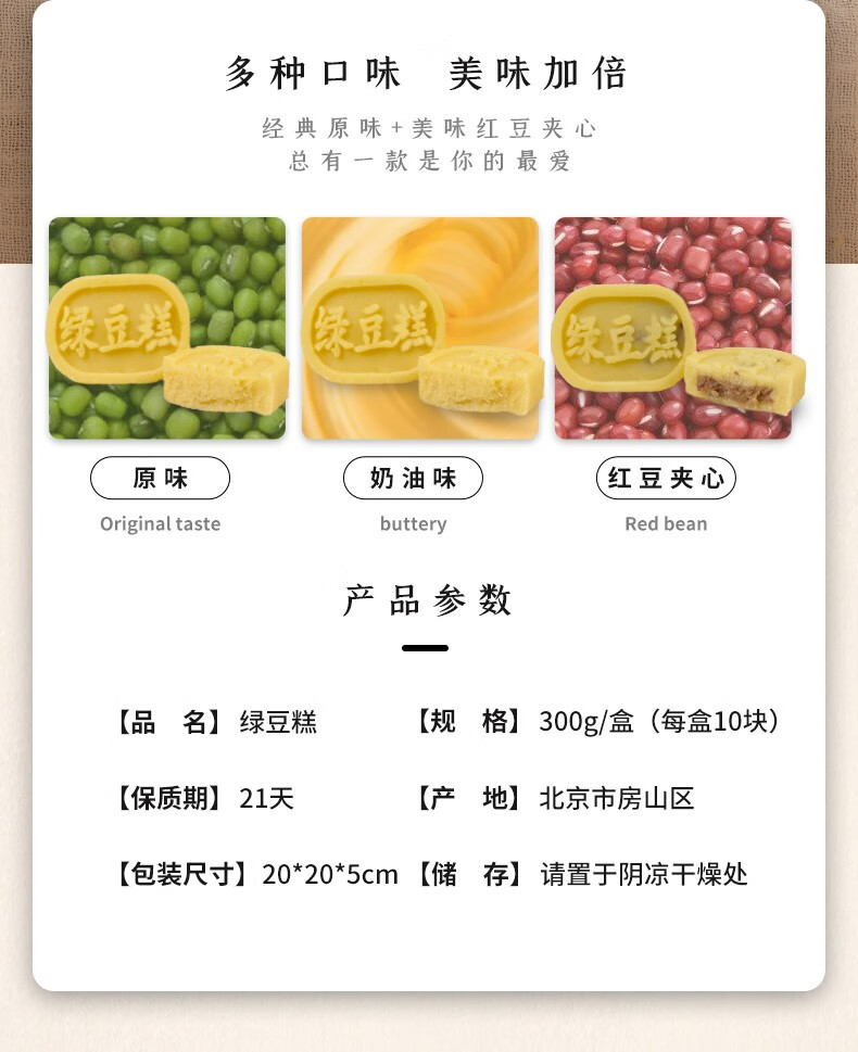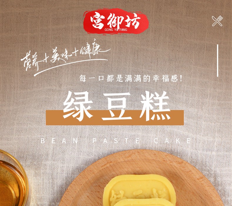 宫御坊手工特产零食绿豆糕三种口味300g*3