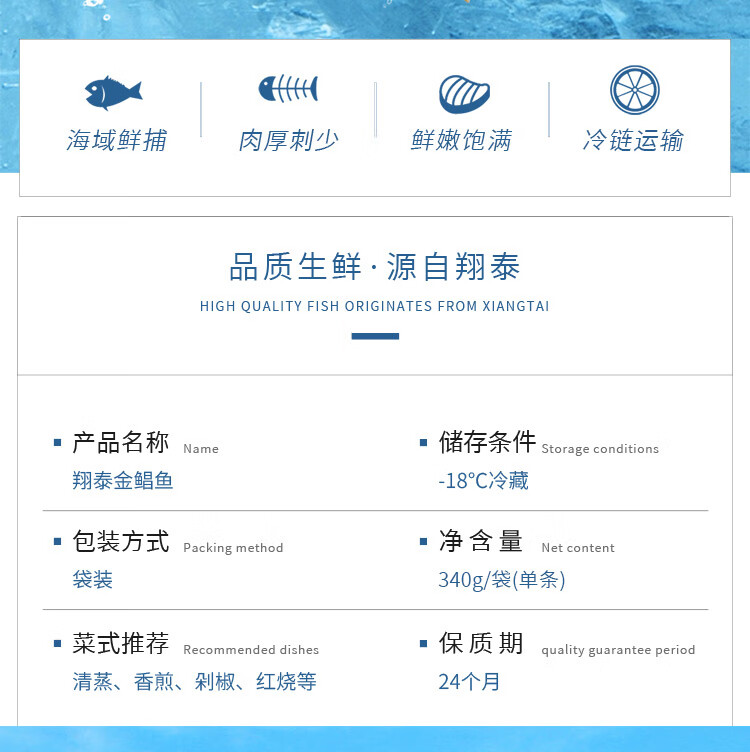 翔泰 冷冻二去金鲳鱼340g1条 ASC 生鲜鱼类 深海鱼 火锅食材海鲜水产