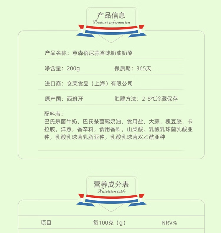 意森蓓尼 蒜香味软质奶油奶酪200g 涂抹奶酪原制烘焙即食