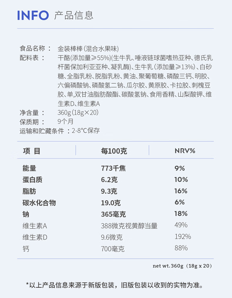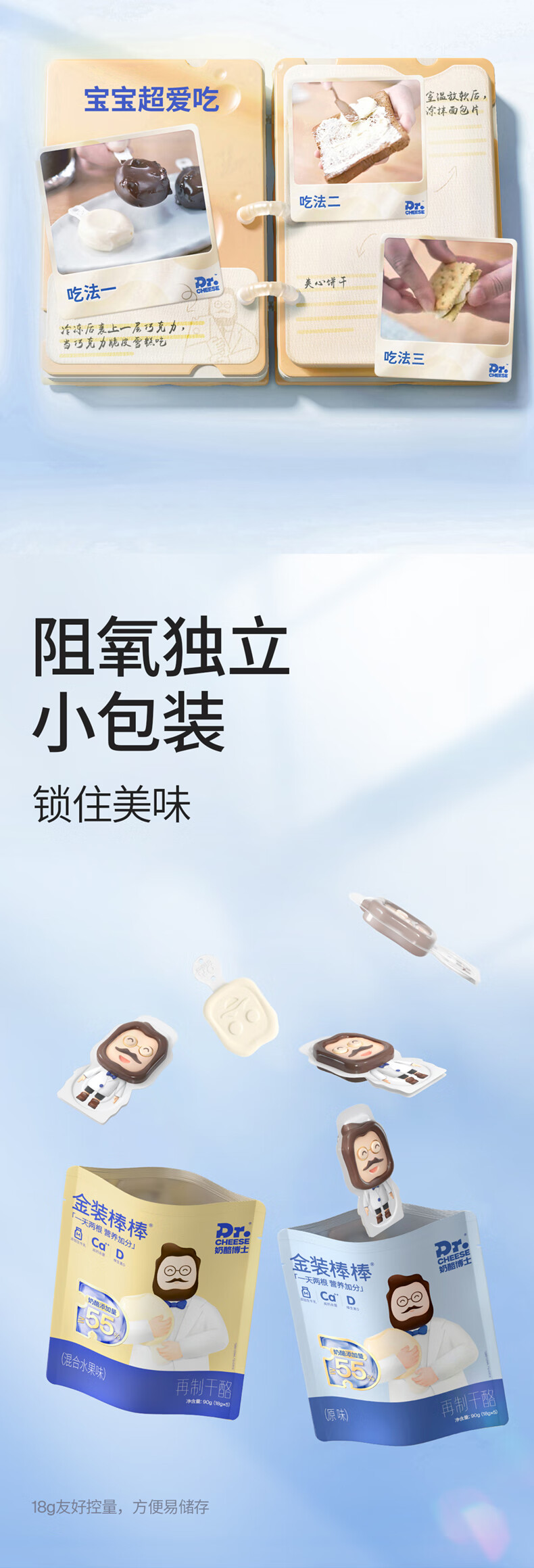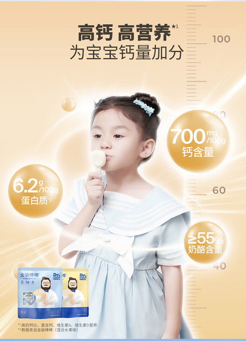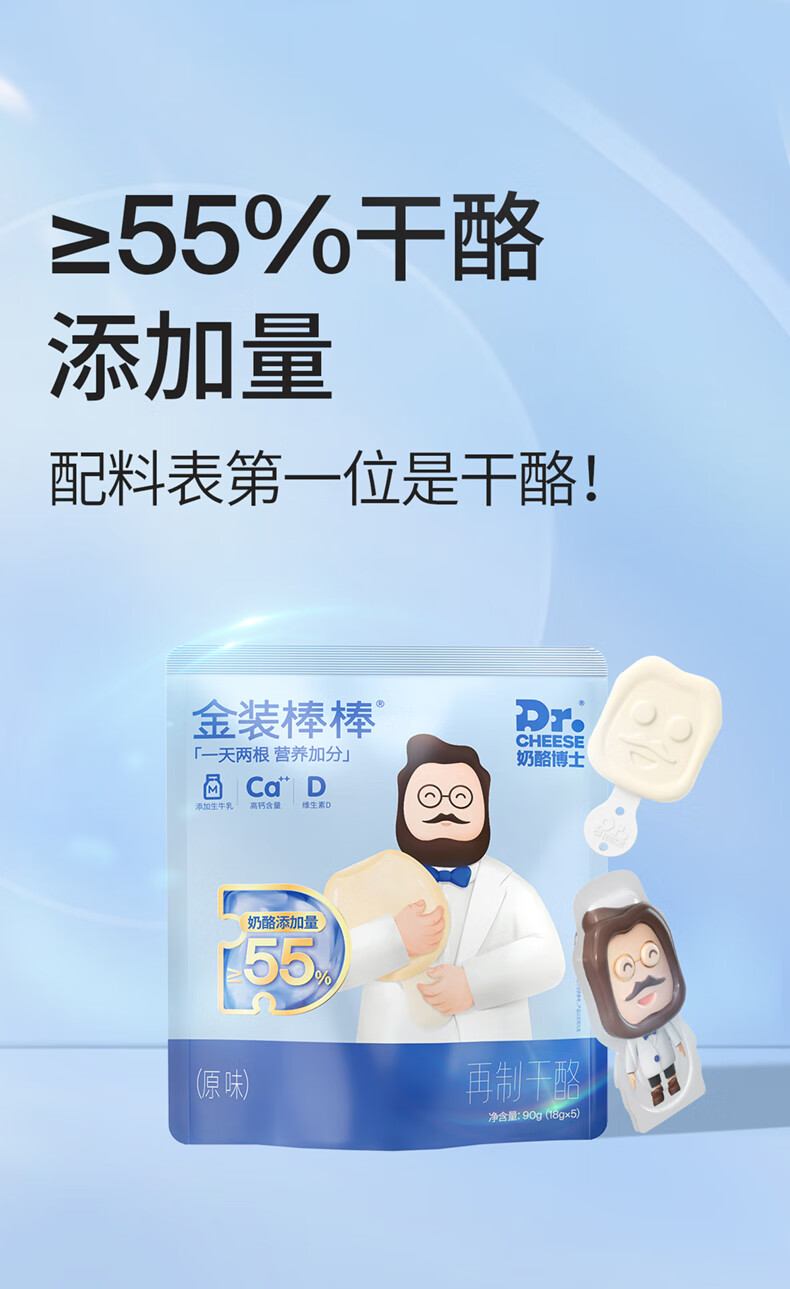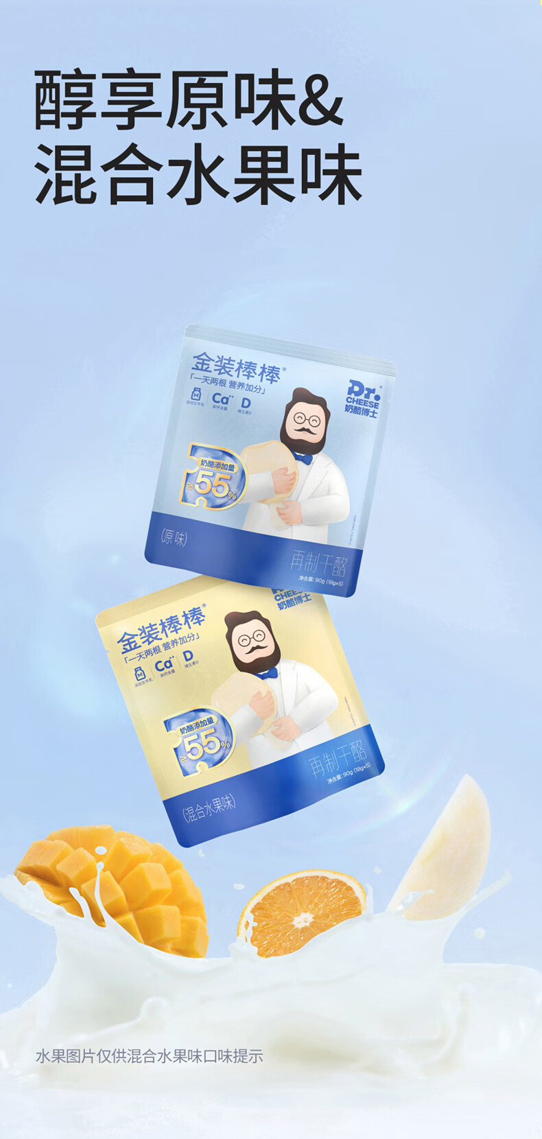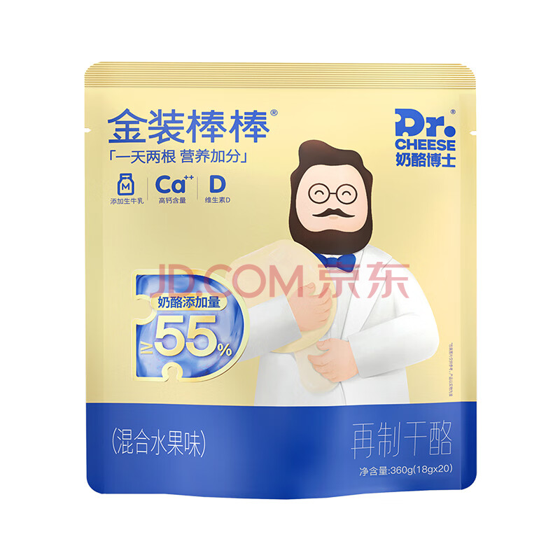 奶酪博士(Dr.Cheese)金装奶酪棒 ≥55%干酪含量 宝宝零食高钙营养混合水果味360g/20支