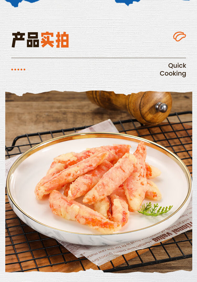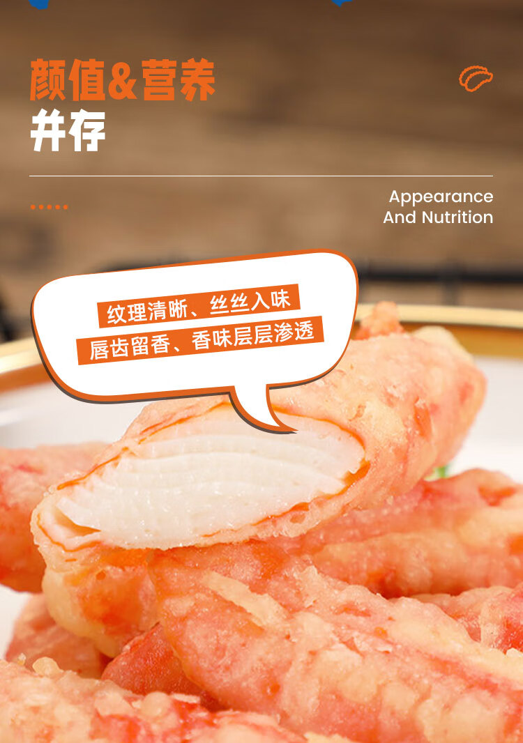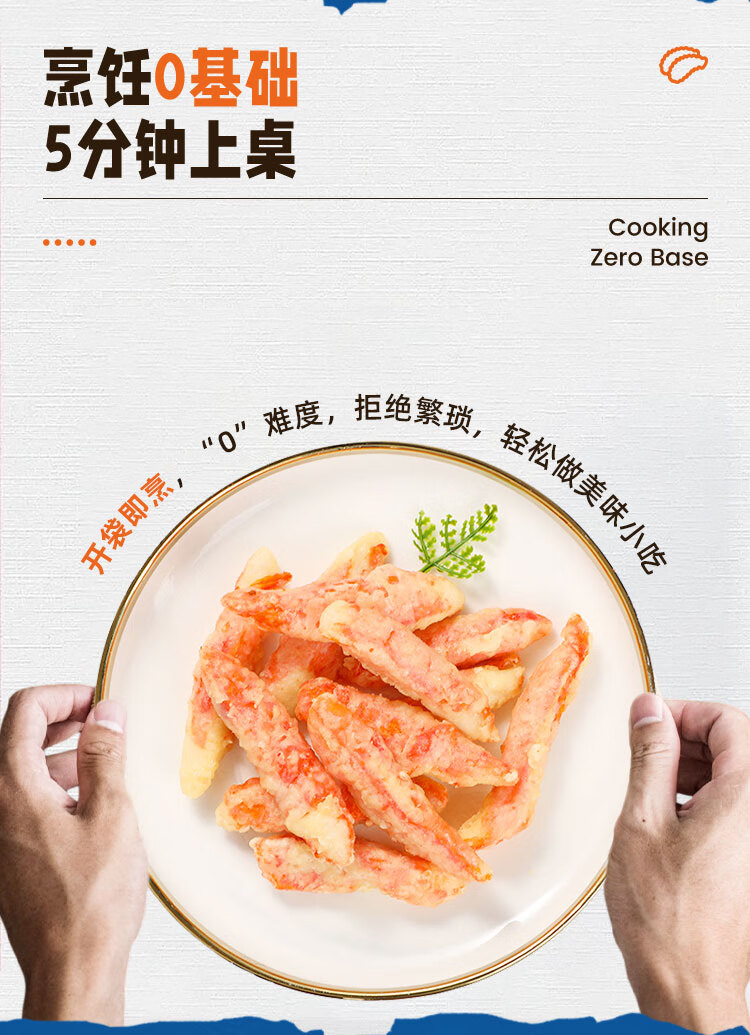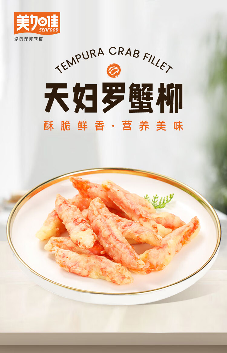 美加佳天妇罗蟹味柳1kg 空气炸锅蟹柳 鱼糜含量70% 空气炸锅食材