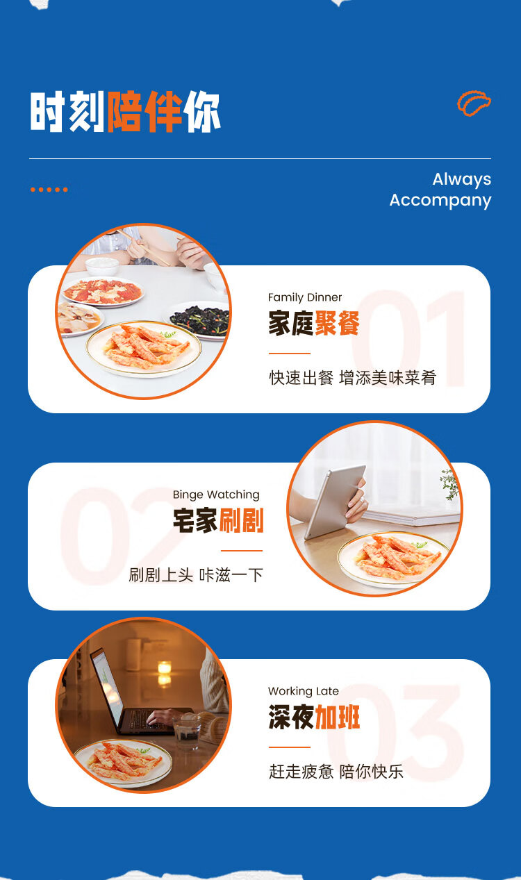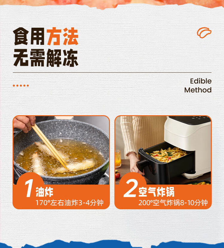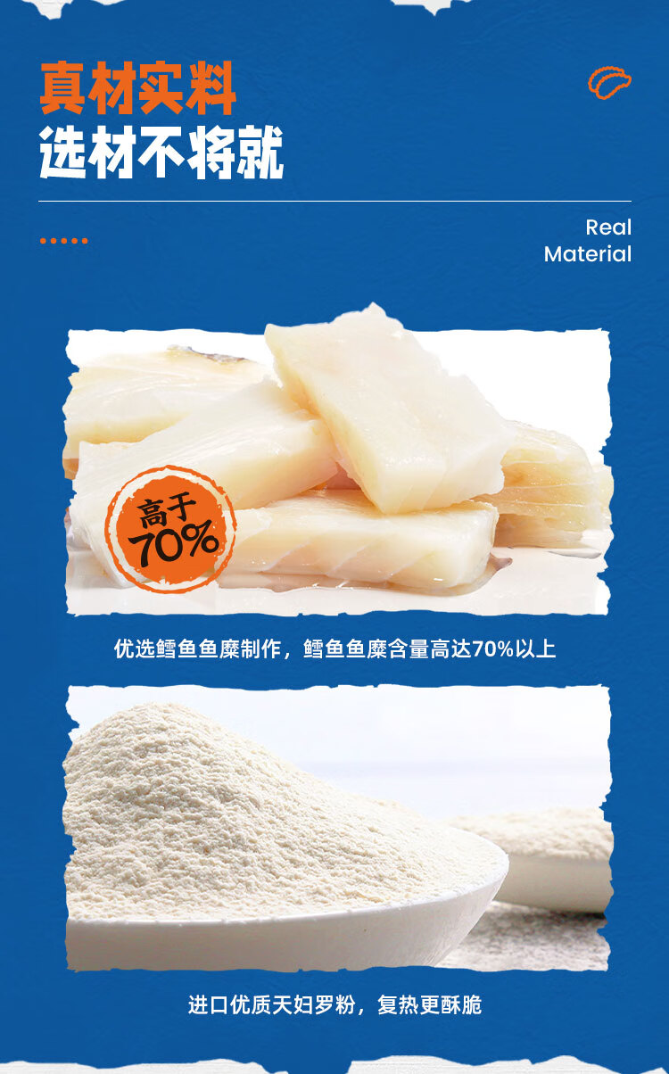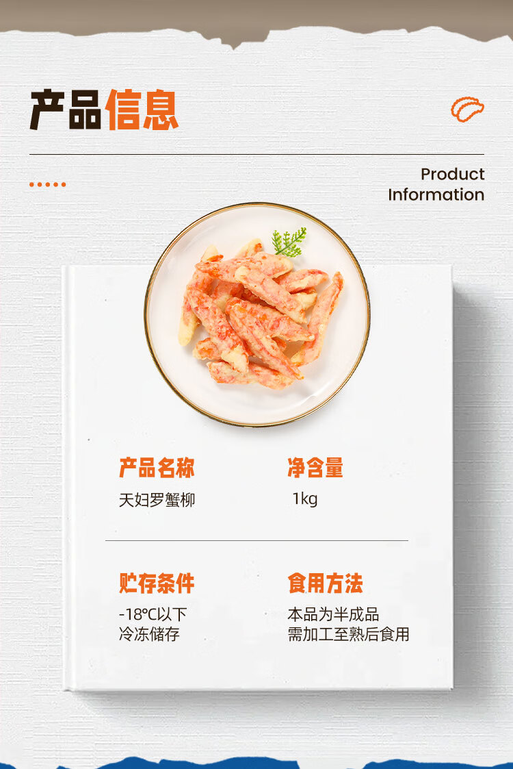 美加佳天妇罗蟹味柳1kg 空气炸锅蟹柳 鱼糜含量70% 空气炸锅食材