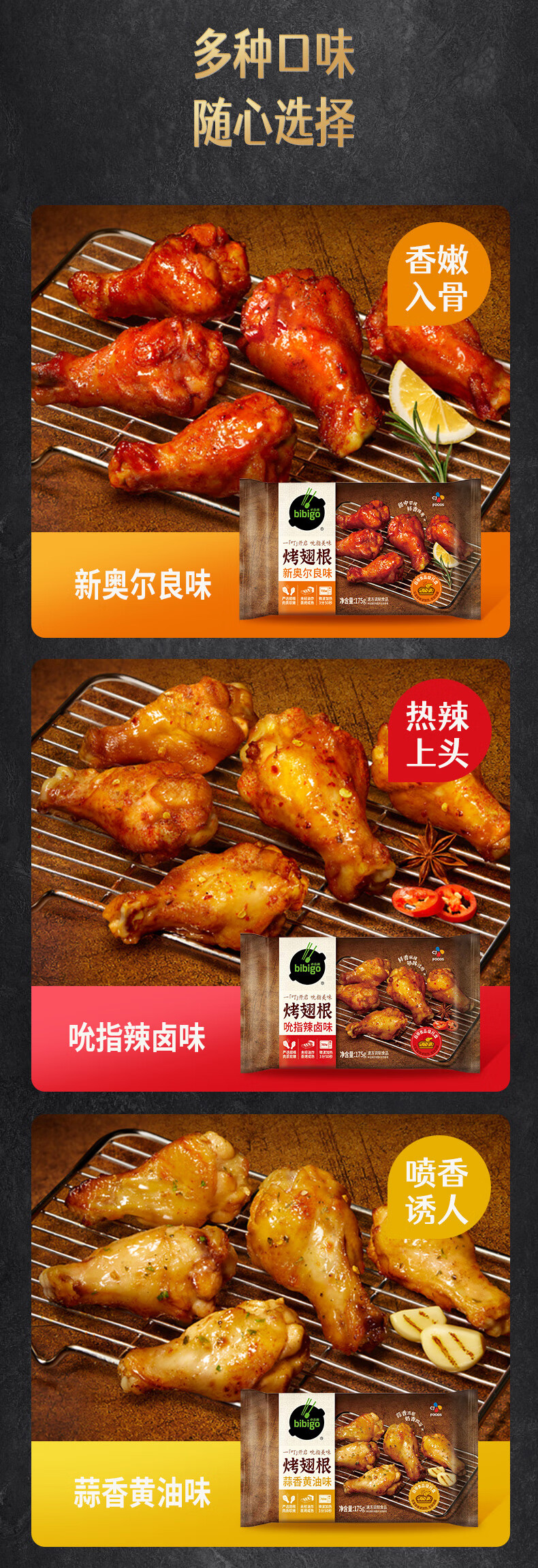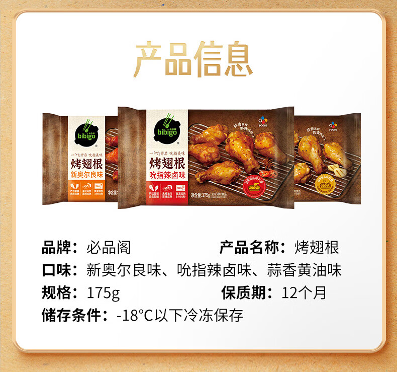 必品阁烤翅根 蒜香黄油味175g 宵夜空气炸锅半成品鸡翅根烧烤食材