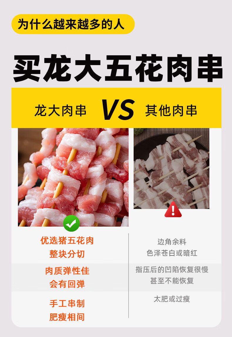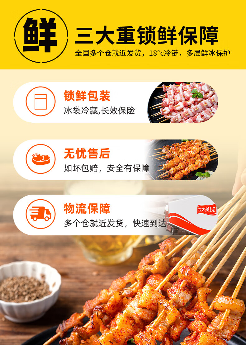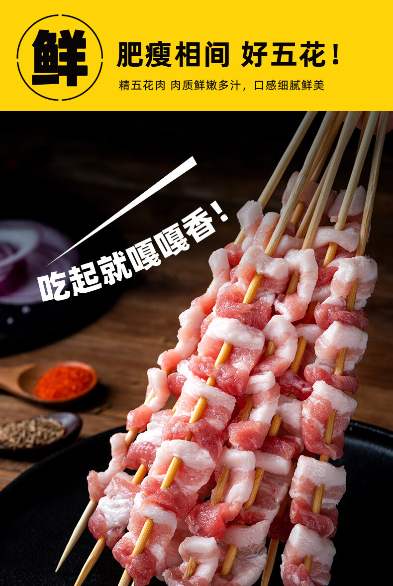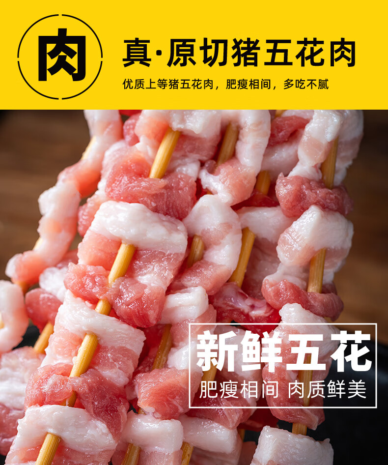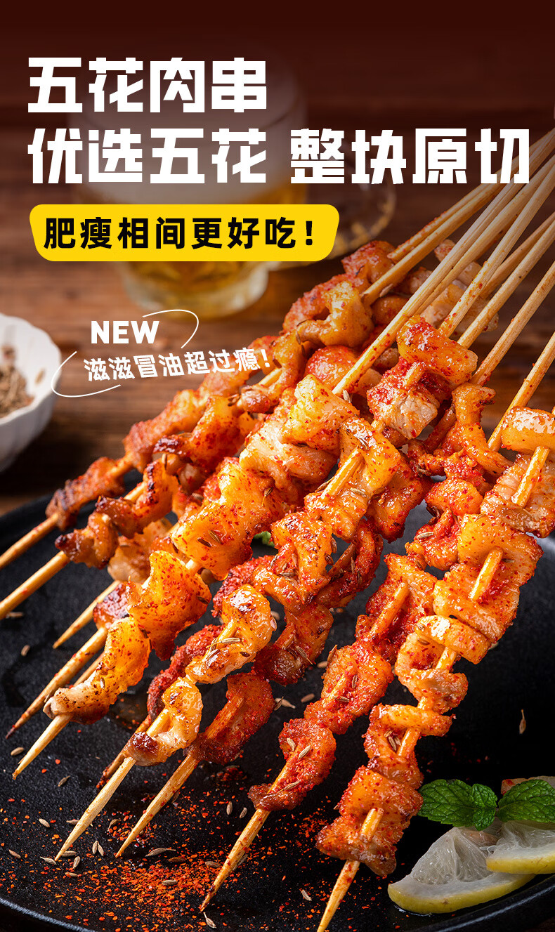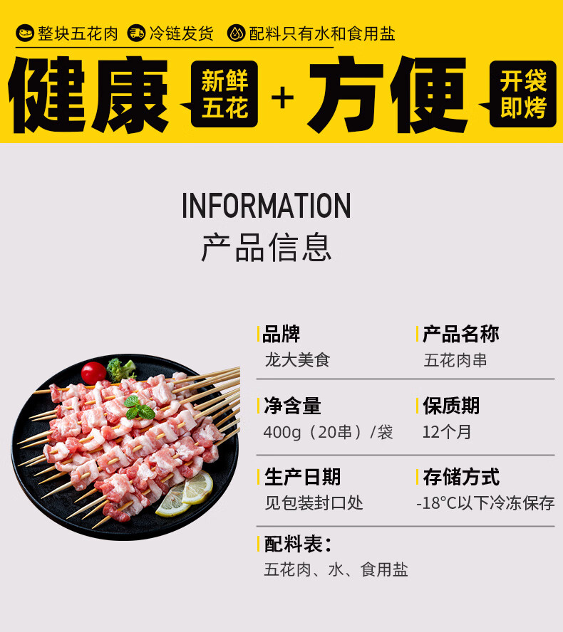 龙大美食 五花肉串400g(20串)烧烤食材烤五花烤肉串方便半成品肥肉均衡
