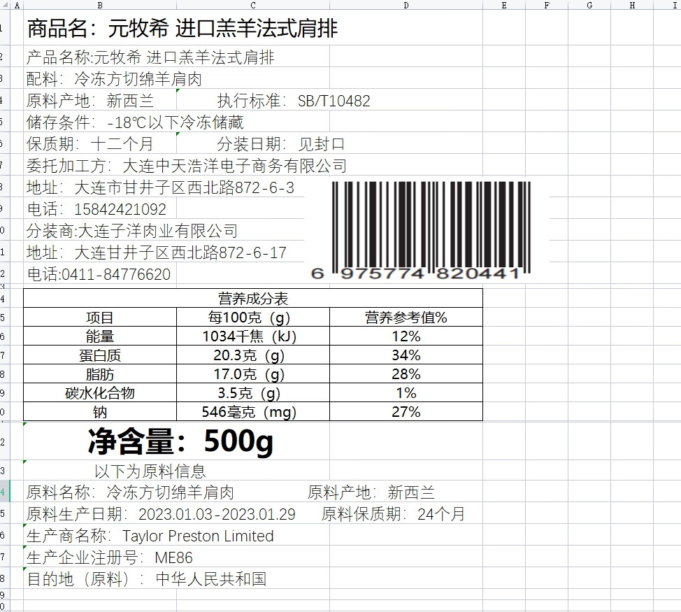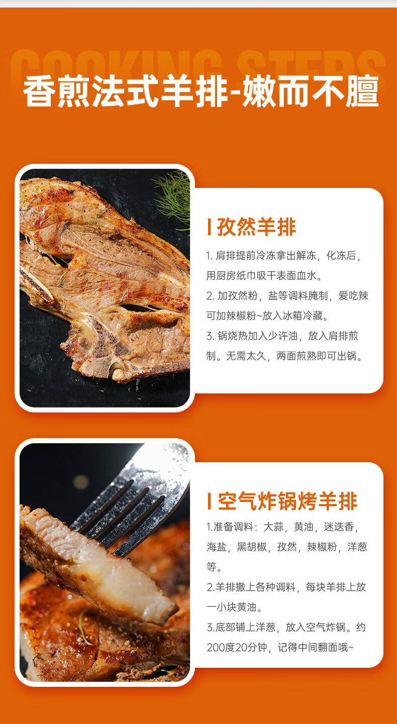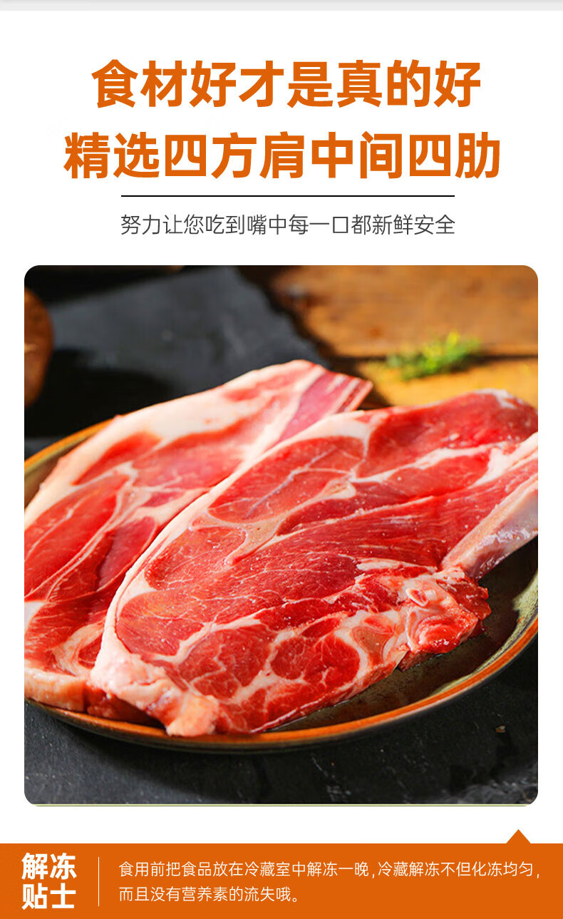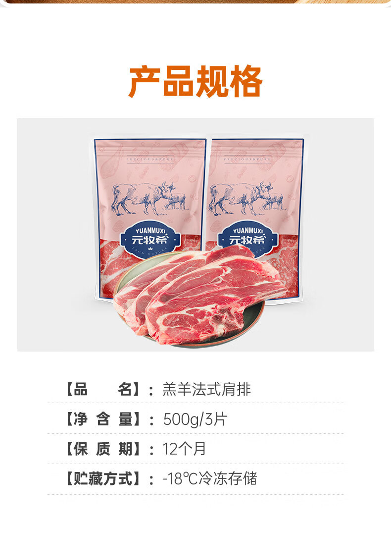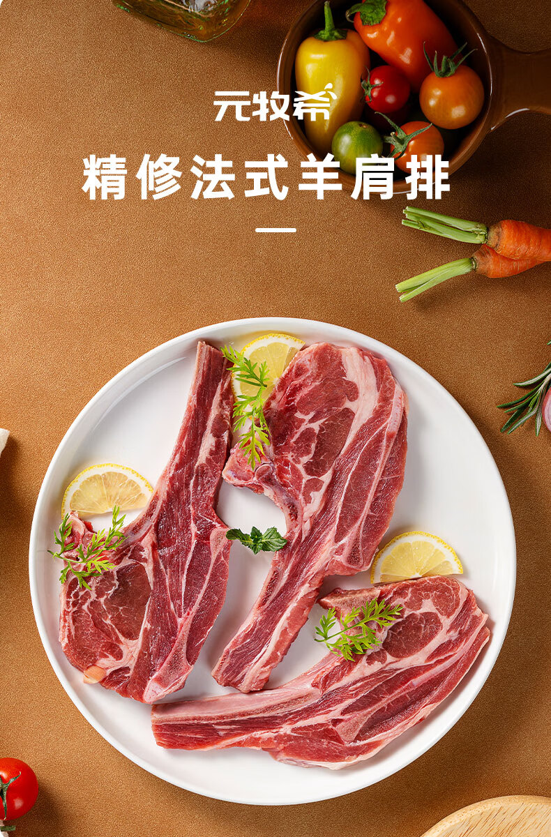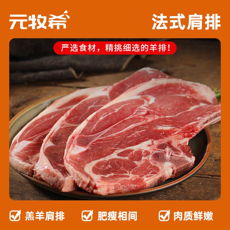 元牧希进口羔羊肉法式肩排500g/3片装 新鲜羊排战斧烧烤食材冷冻生鲜