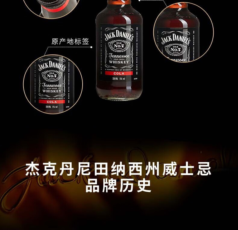 杰克丹尼(Jack Daniels)威士忌预调酒 可乐味 330ml*24瓶整箱装(新老包装随机发货)