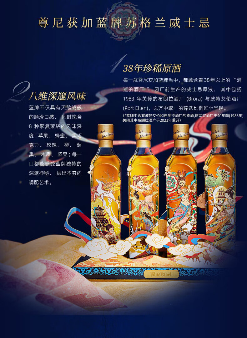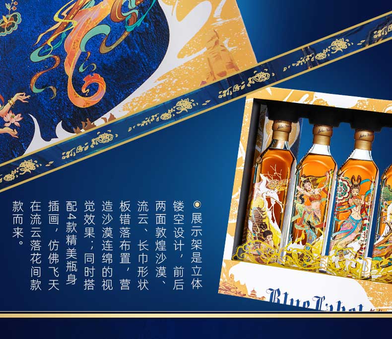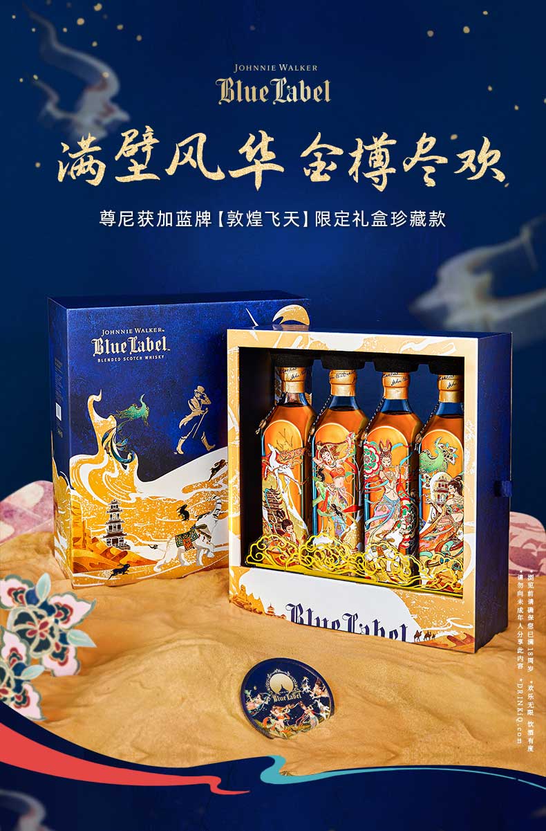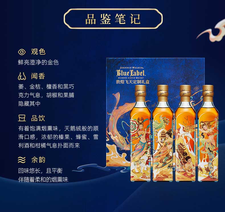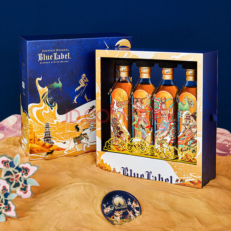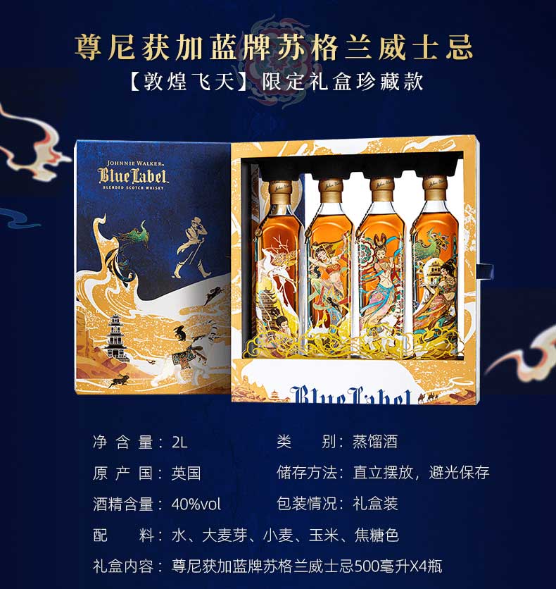 尊尼获加(JOHNNIE WALKER)蓝牌 独家定制礼盒 敦煌飞天系列威士忌500ml*4