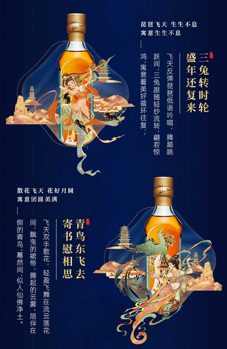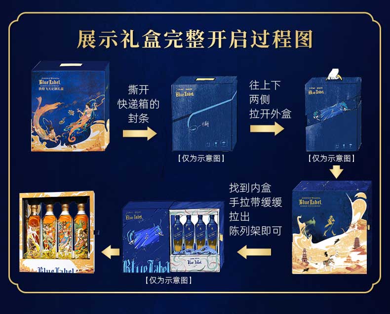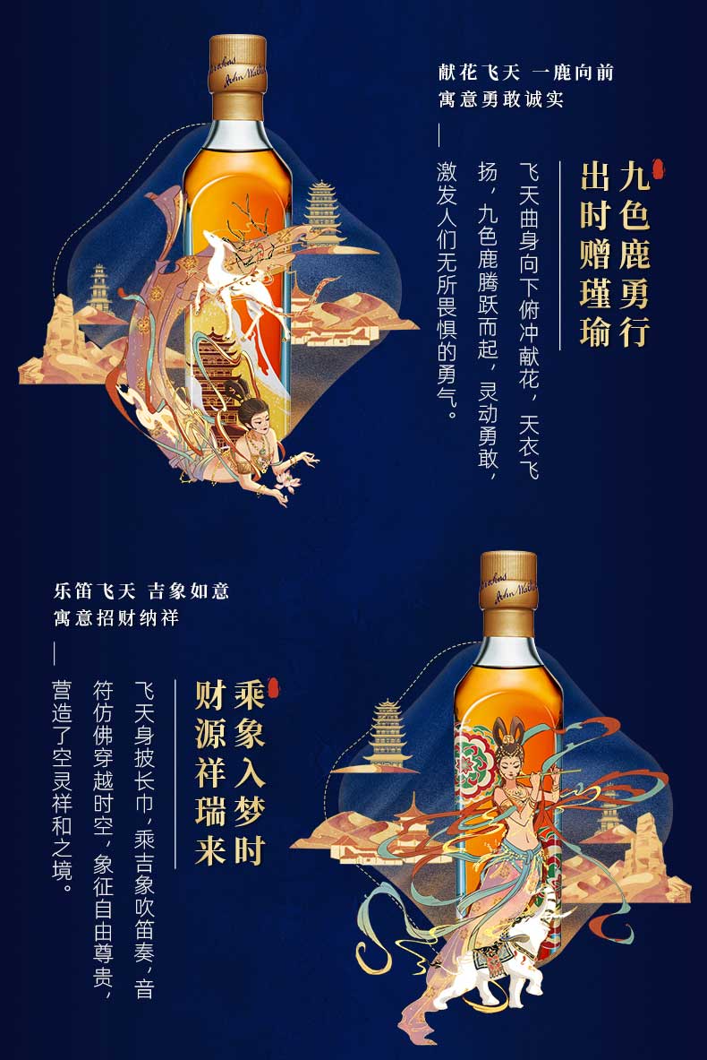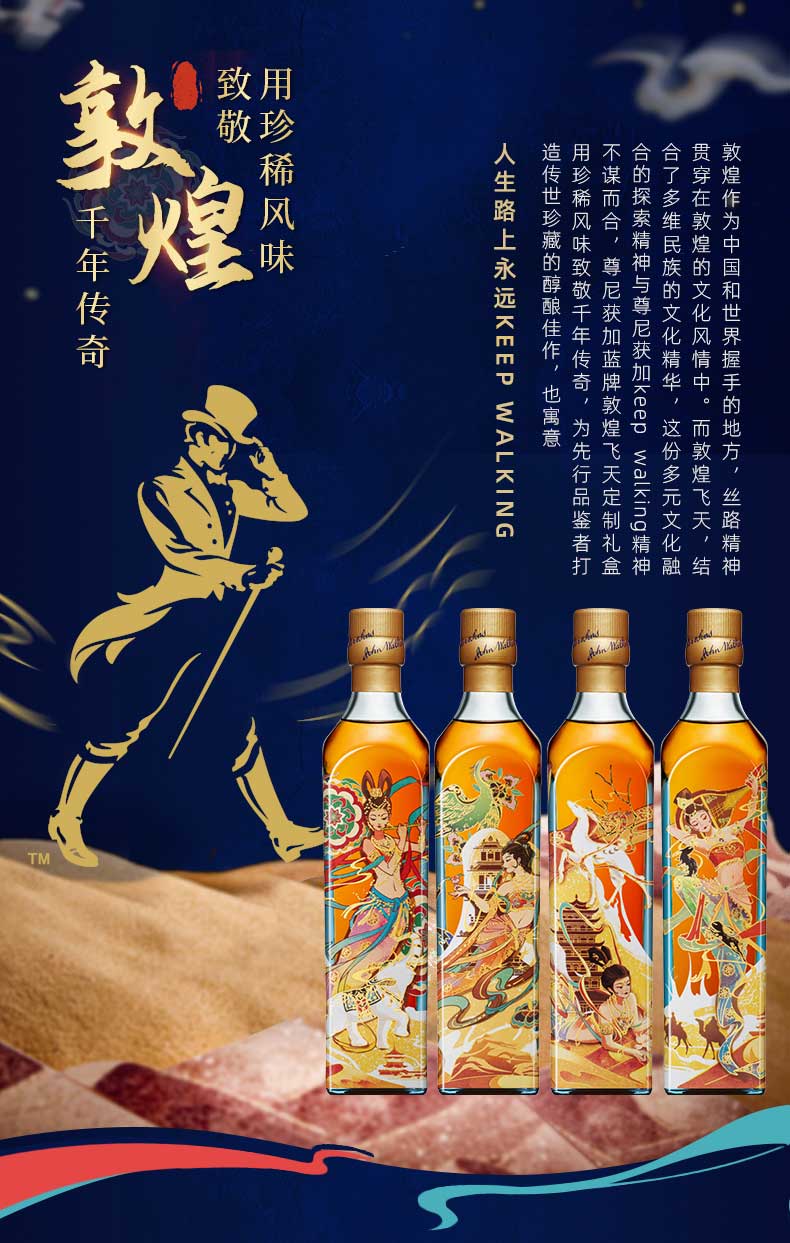 尊尼获加(JOHNNIE WALKER)蓝牌 独家定制礼盒 敦煌飞天系列威士忌500ml*4