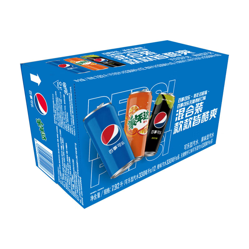 百事可乐 Pepsi 汽水 百事330ml*12听+美年达330ml*6听+无糖青柠330ml*6听