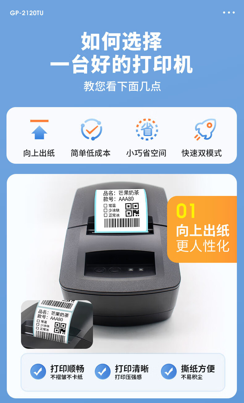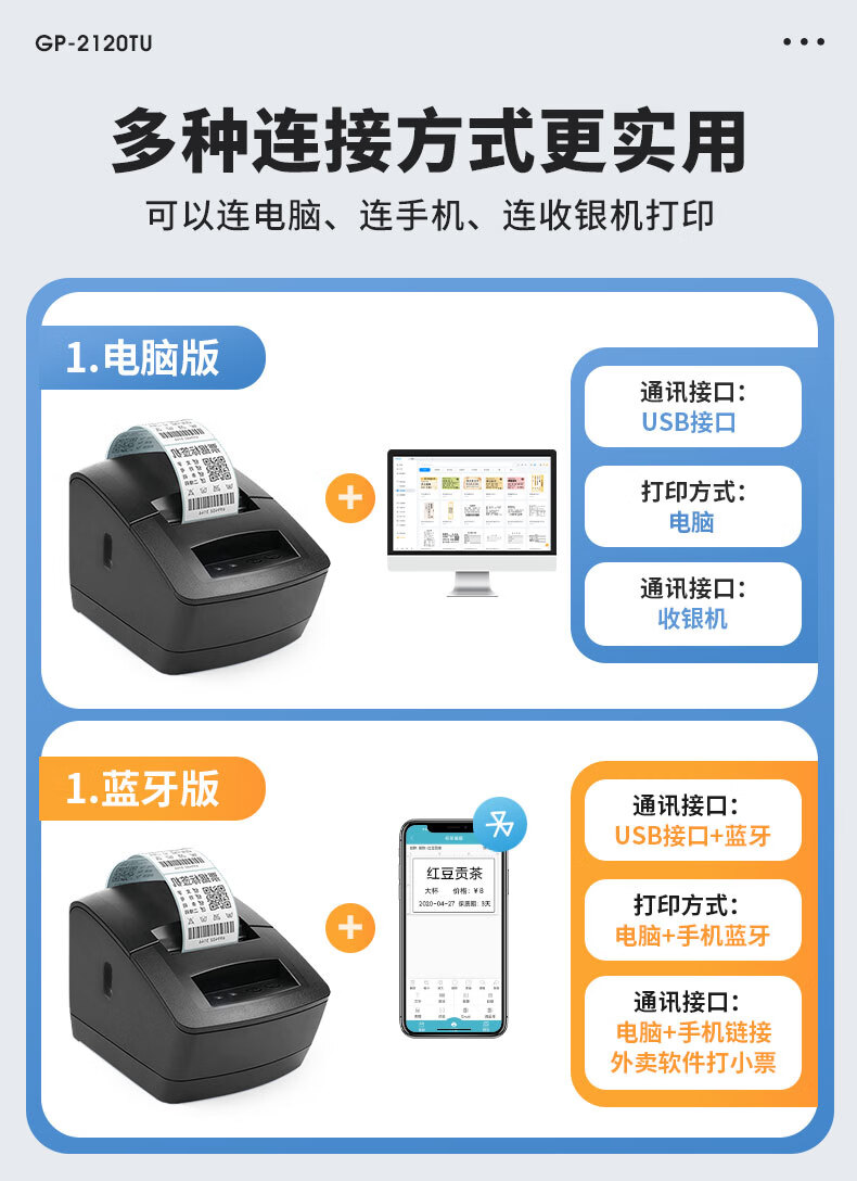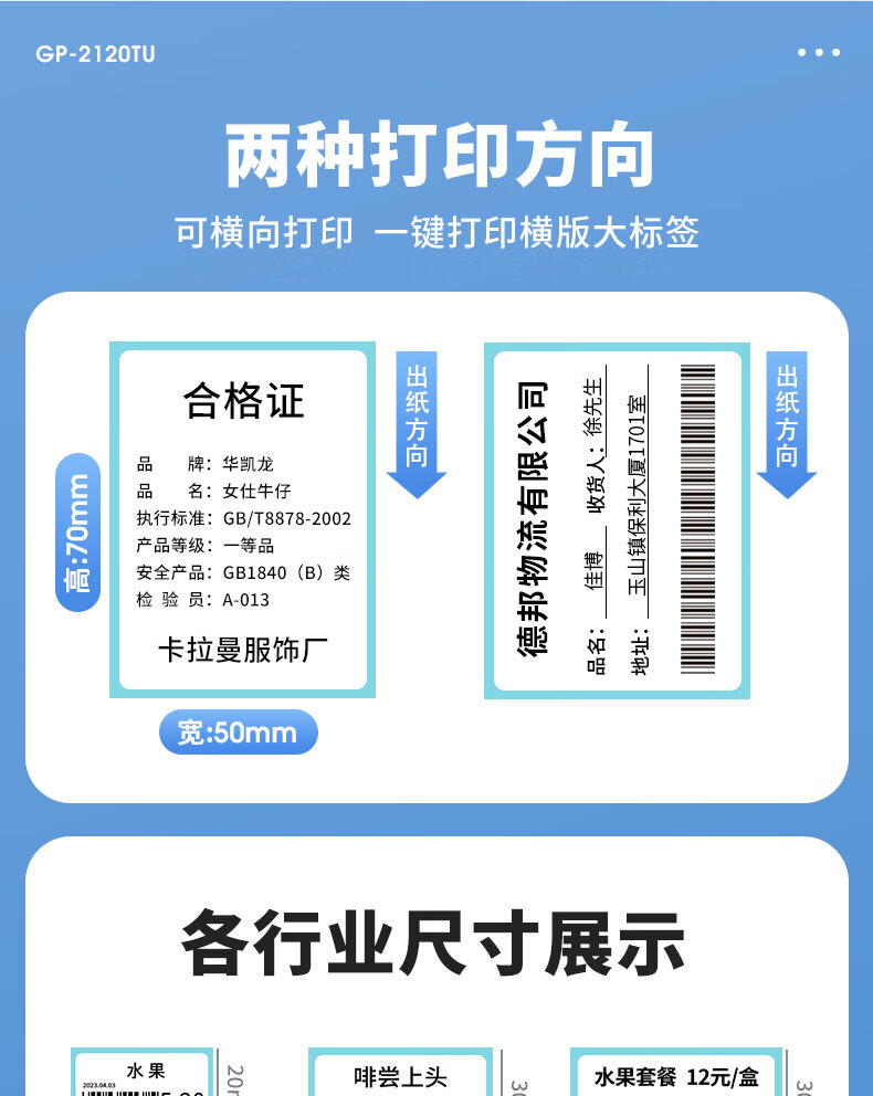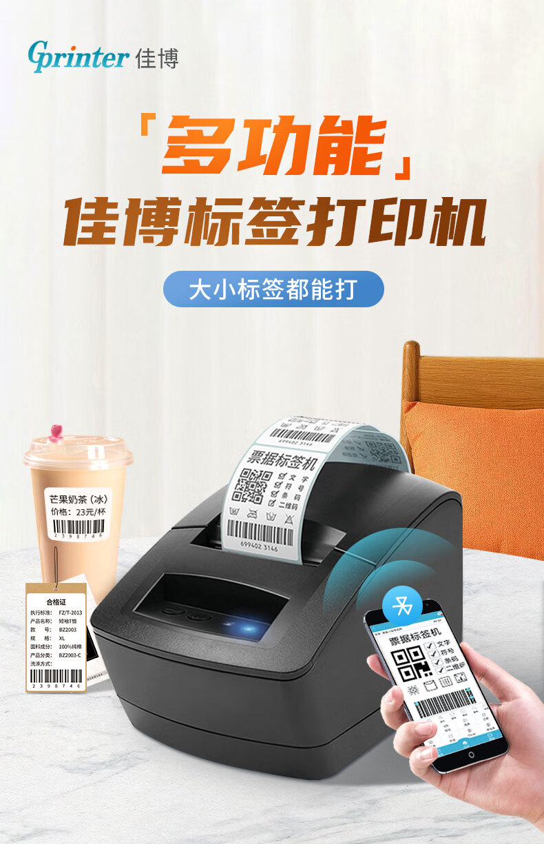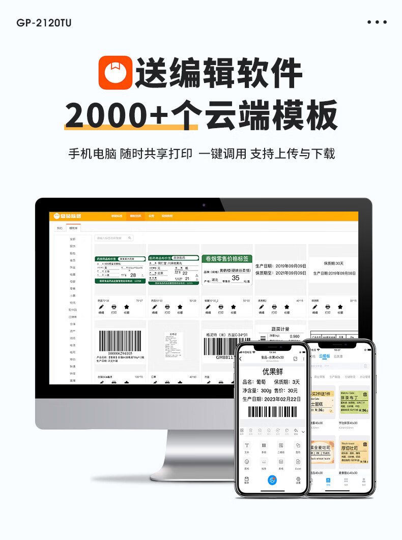 佳博(Gprinter)GP2120TU条码打印机热敏不干胶标签机服装吊牌奶茶店3120标签打印机 GP-2270T【电脑+手机版】