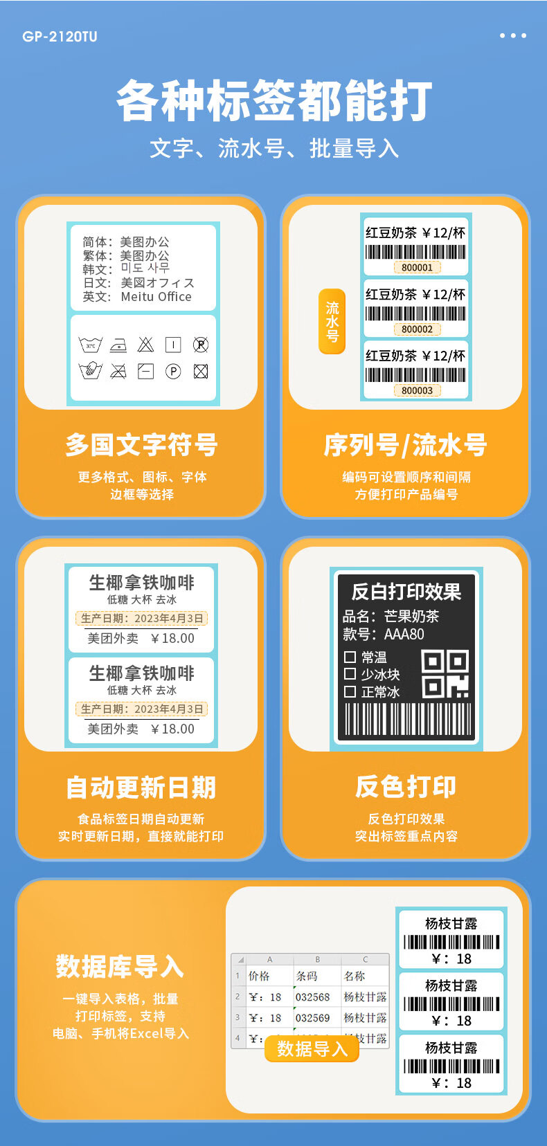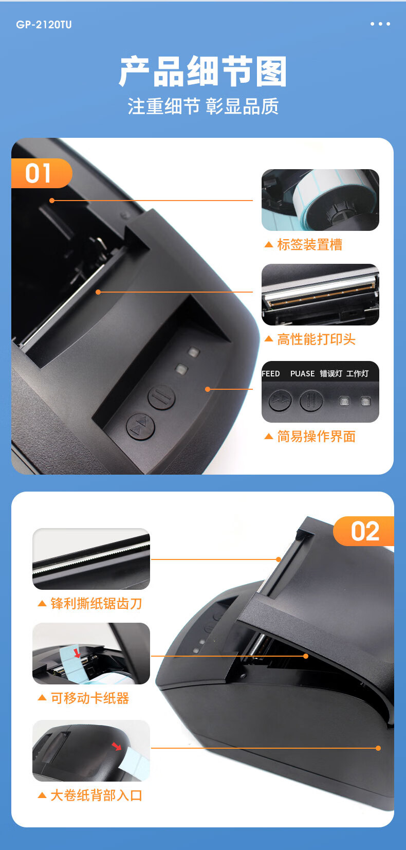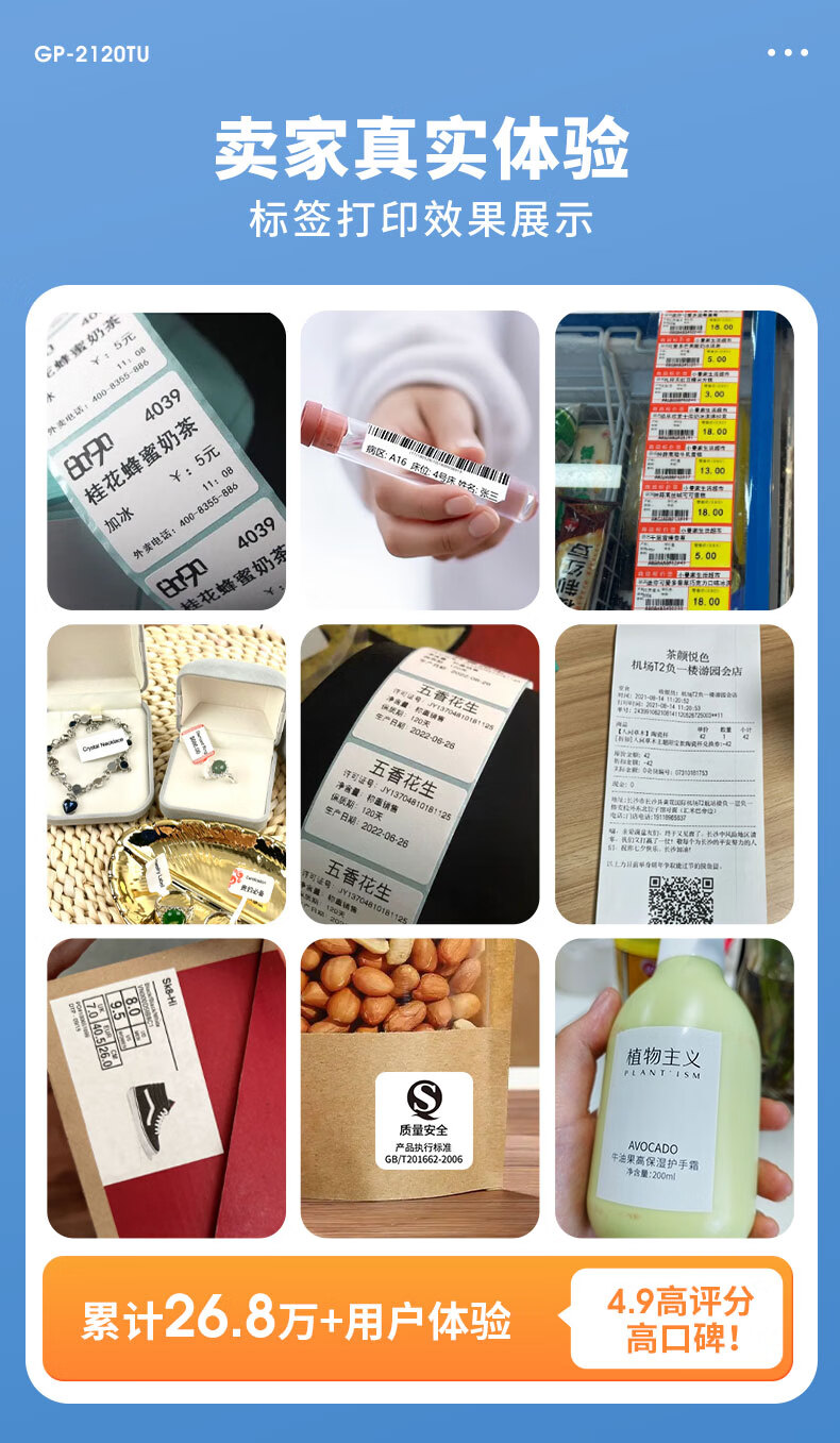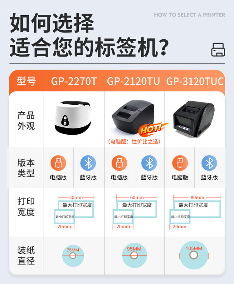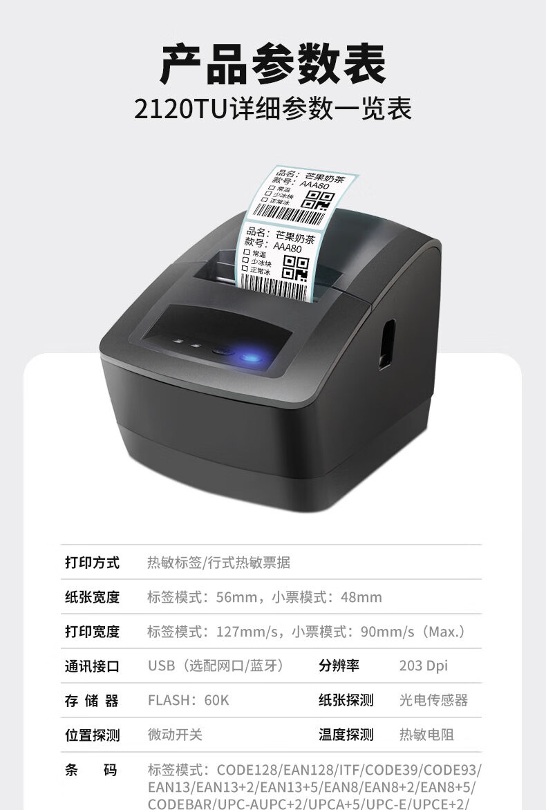 佳博(Gprinter)GP2120TU条码打印机热敏不干胶标签机服装吊牌奶茶店3120标签打印机 GP-2270T【电脑+手机版】