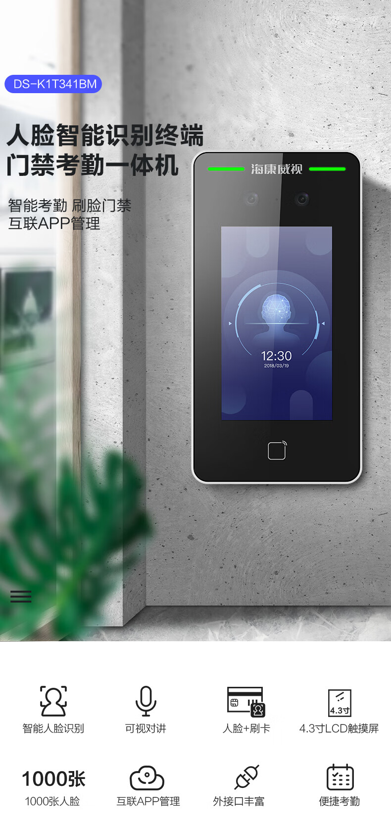 海康威视(HIKVISION) 人脸门禁一体机考勤机打卡机办公室企业面部识别wifi智能门禁 方案六【配件需搭配机器】:双门玻璃门上有框无包边