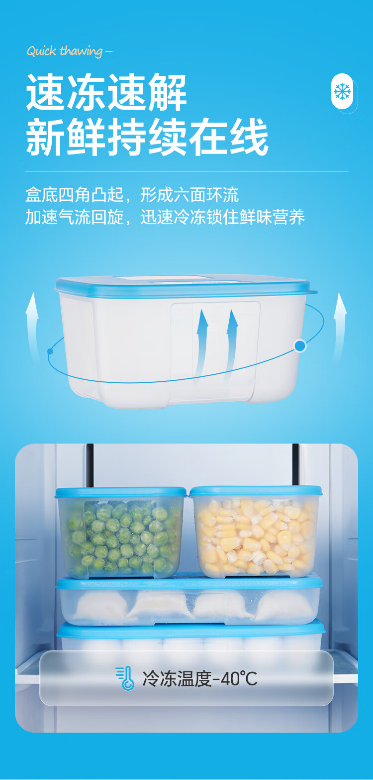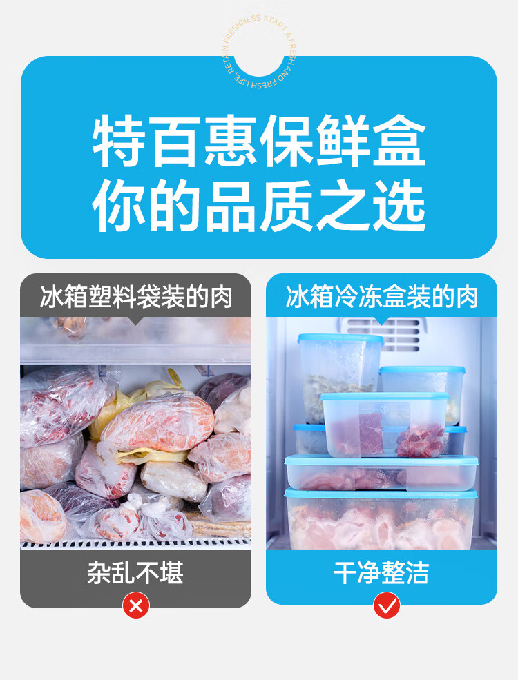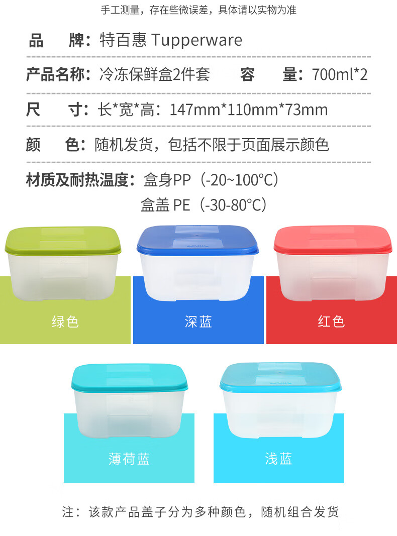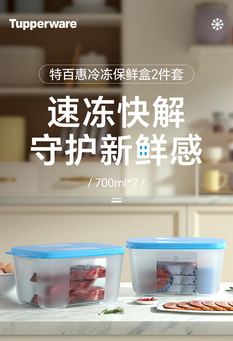 特百惠(Tupperware)冰箱冷冻保鲜盒700mlx2(颜色随机)家用食品级密封收纳盒