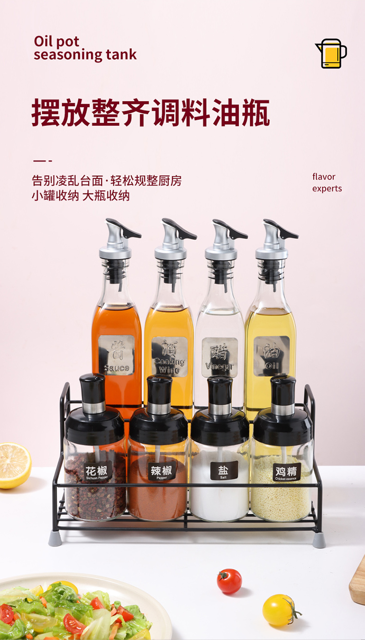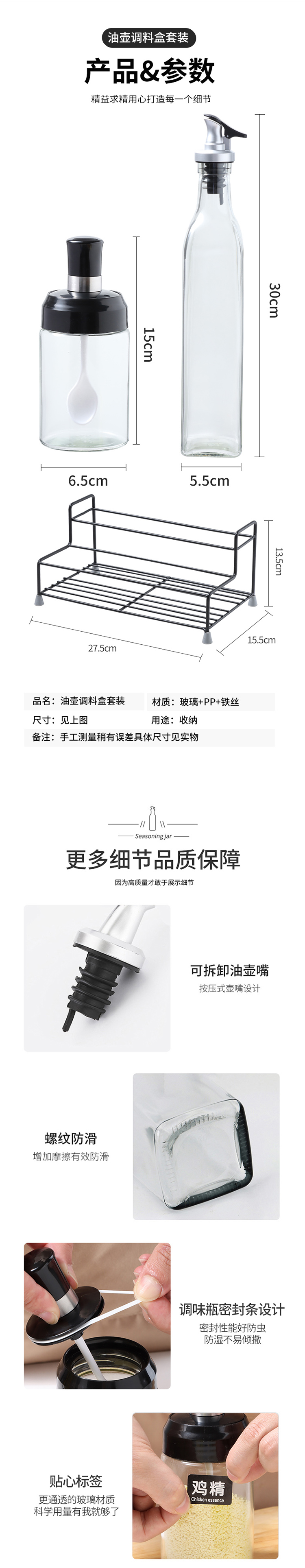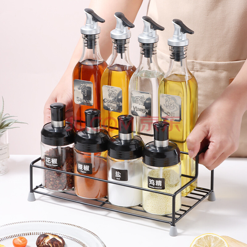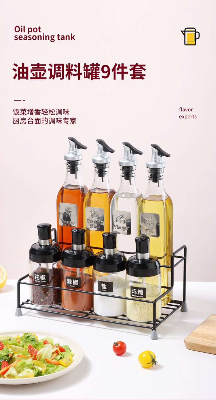 拜杰(Baijie)玻璃油壶调料盒9件套油瓶盐罐调料架调料罐调味罐厨房用品置物架调料瓶调味瓶JL-197