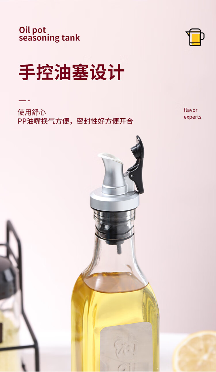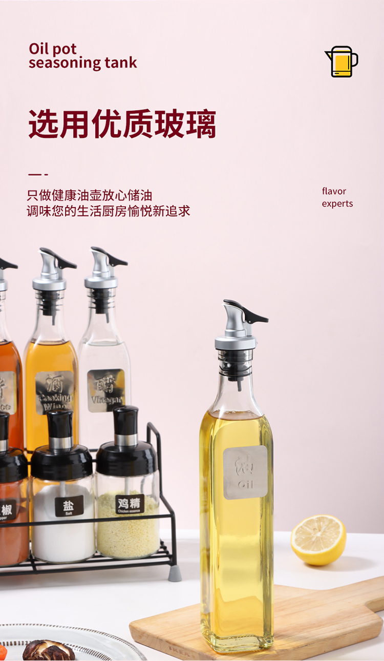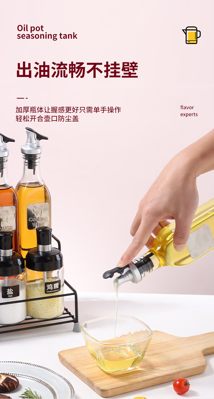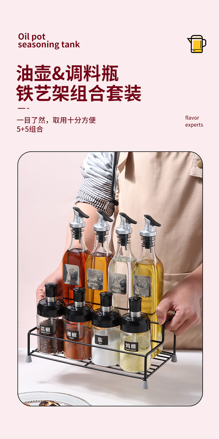 拜杰(Baijie)玻璃油壶调料盒9件套油瓶盐罐调料架调料罐调味罐厨房用品置物架调料瓶调味瓶JL-197