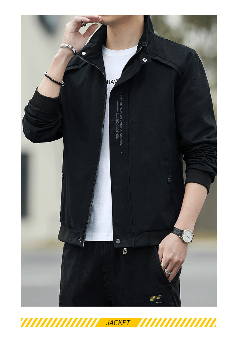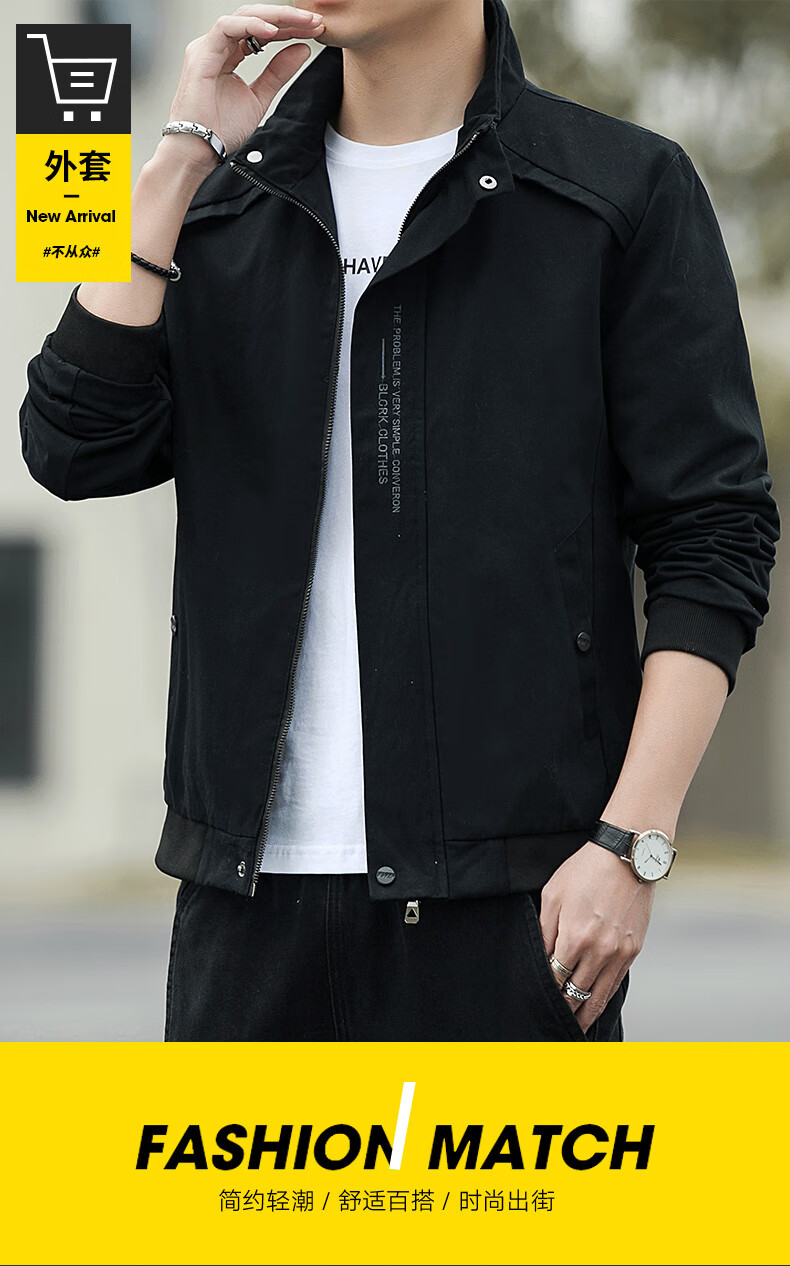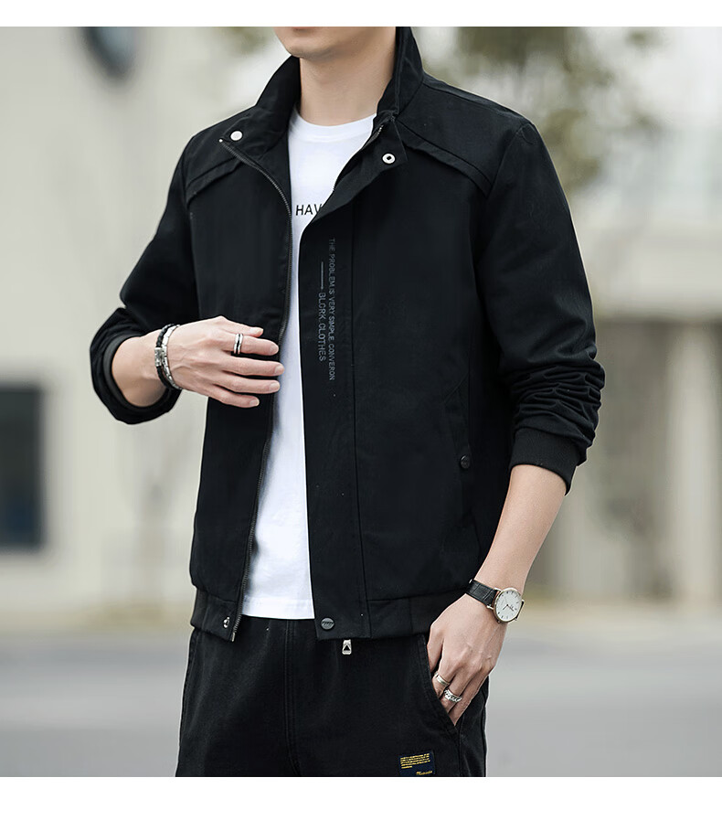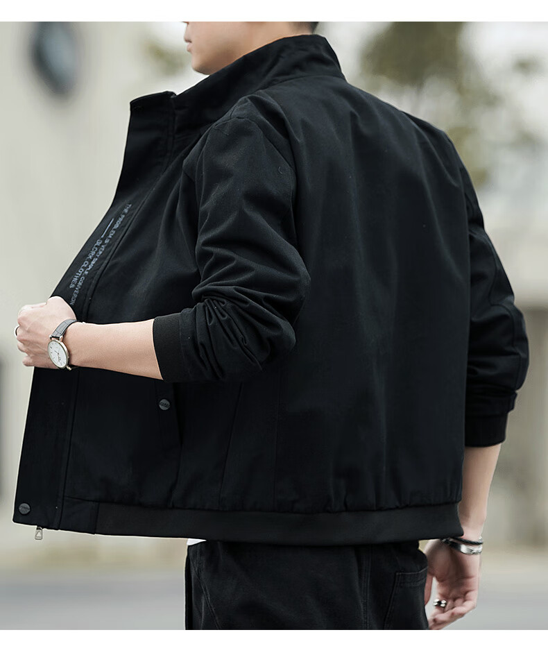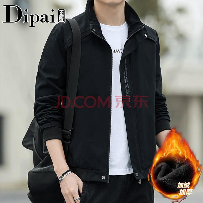 的派(DIPAI)外套男秋冬季新款秋装轻商务休闲男装夹克男士时尚潮流立领工装免烫上衣服男 黑色-加绒款 2XL
