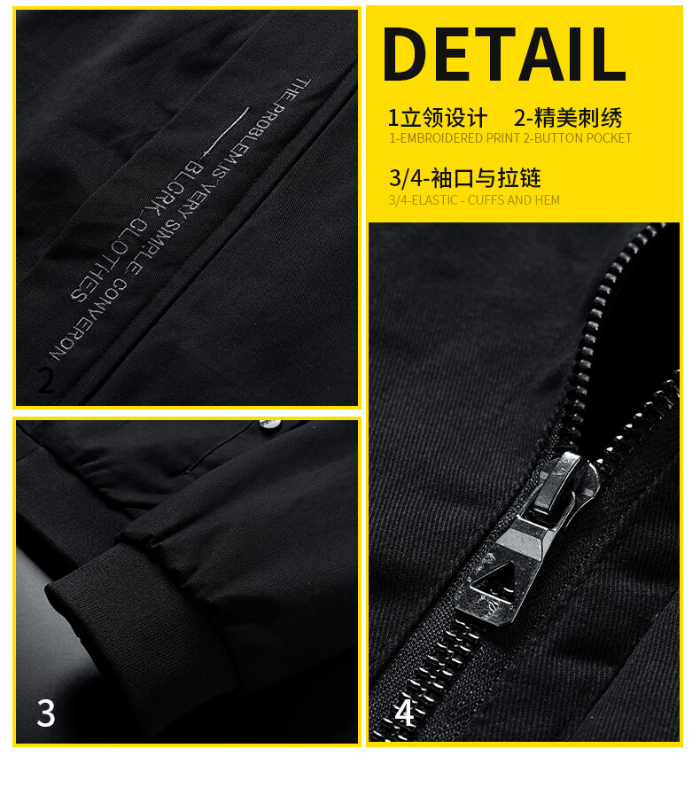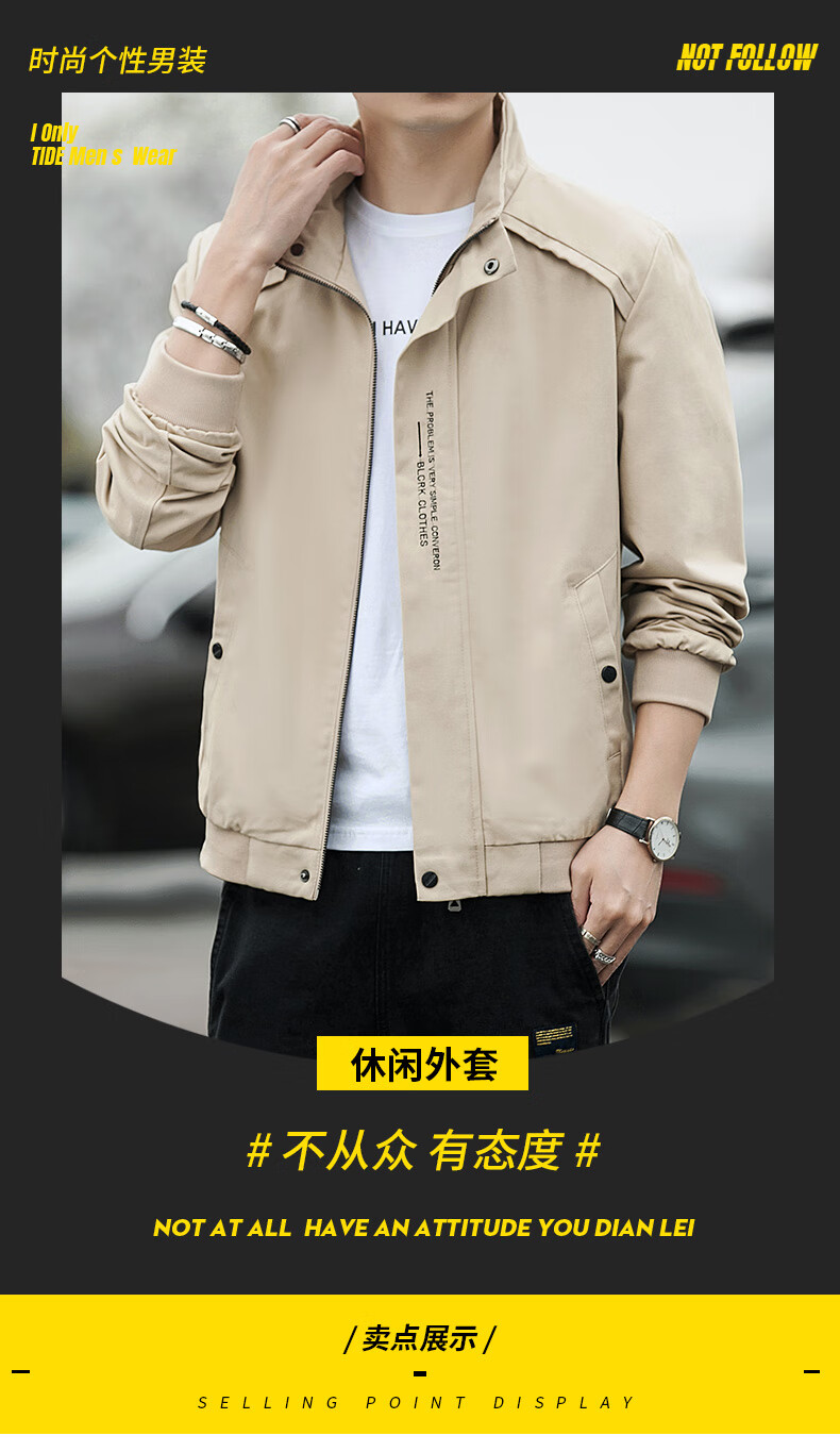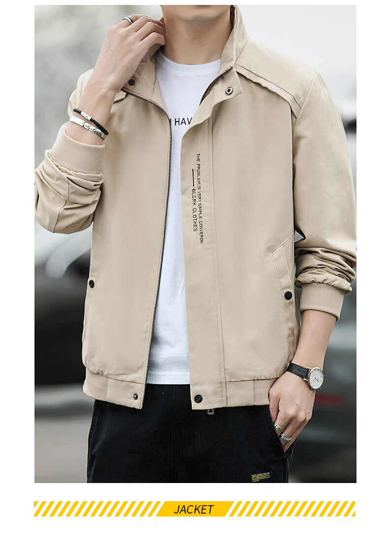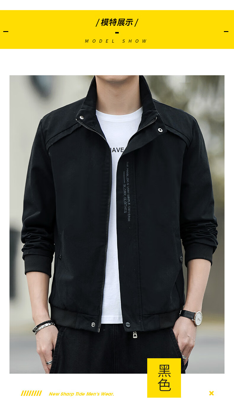 的派(DIPAI)外套男秋冬季新款秋装轻商务休闲男装夹克男士时尚潮流立领工装免烫上衣服男 黑色-加绒款 2XL