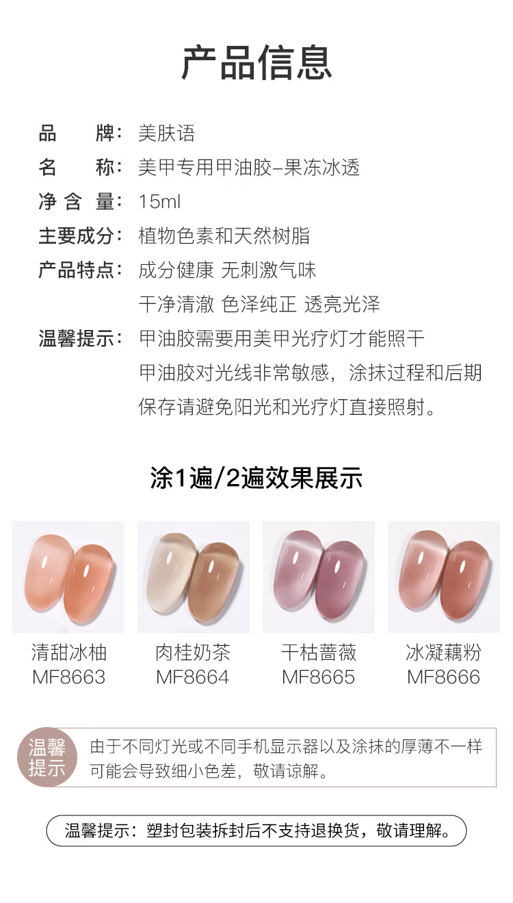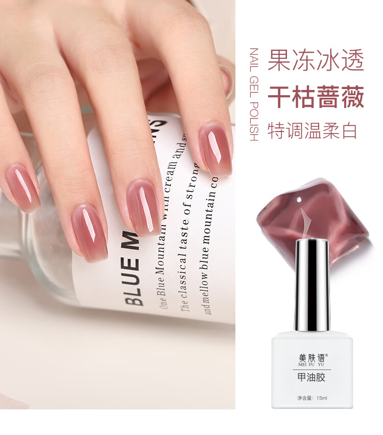 美肤语美甲甲油胶指甲油(干枯蔷薇)果冻冰透裸色需灯烤光疗美甲胶MF8665