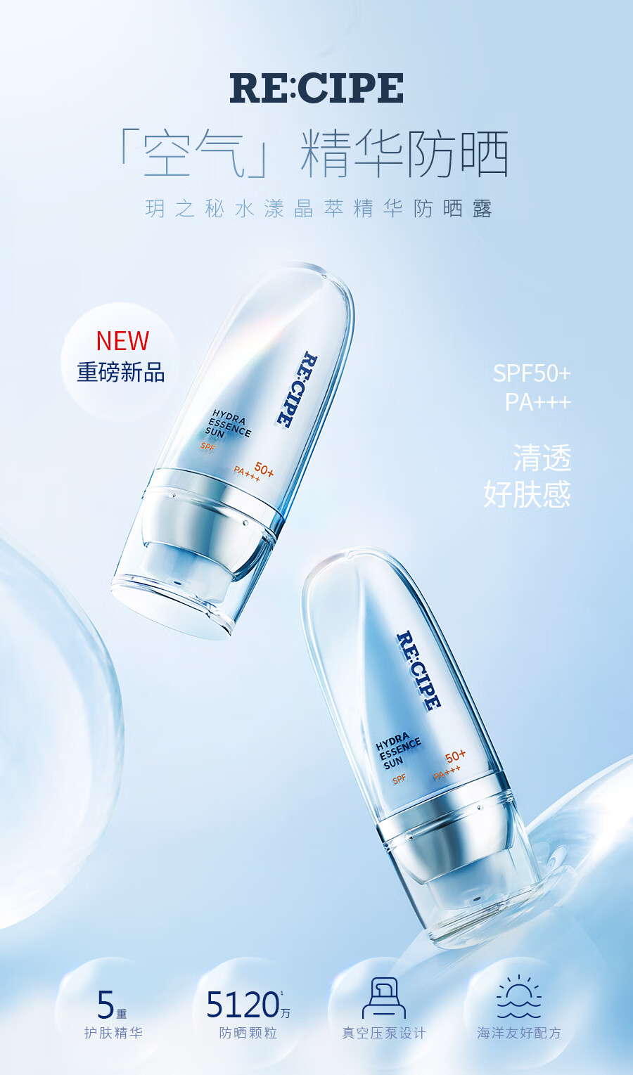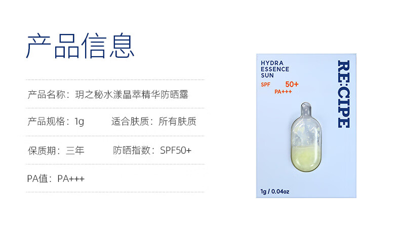 RE:CIPE玥之秘水漾晶萃精华防晒露 SPF50+ PA+++ 1g