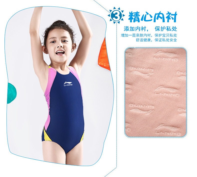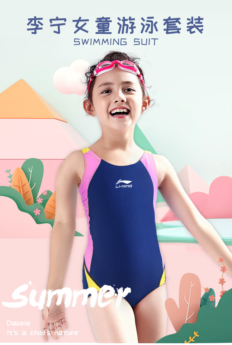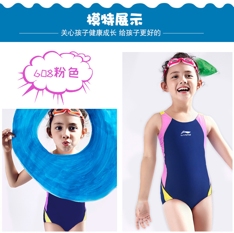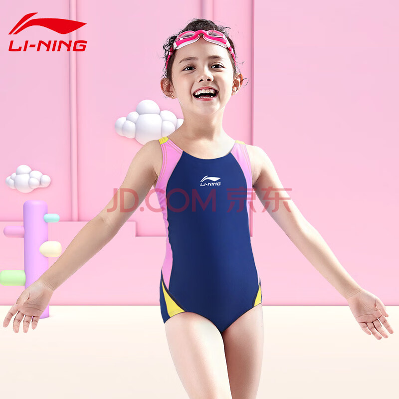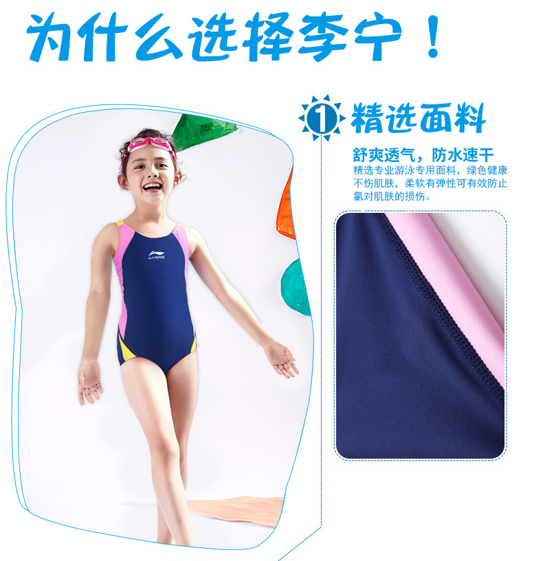 李宁(LI-NING)儿童 泳衣 女连体三角训练游泳衣 女童可爱游泳衣608 蓝粉 150