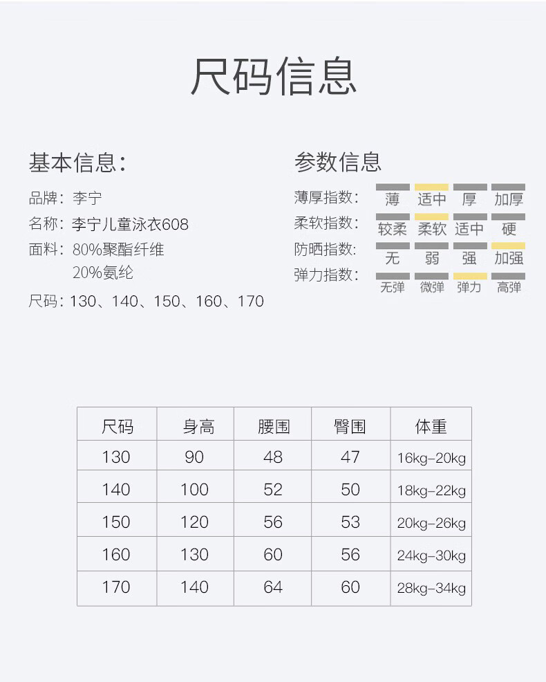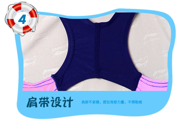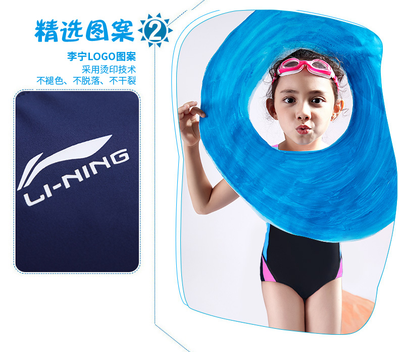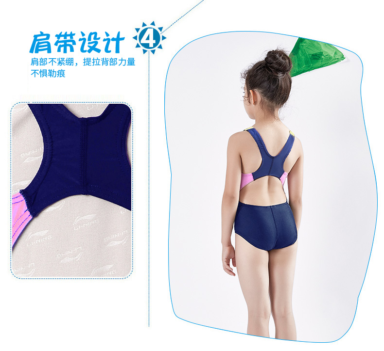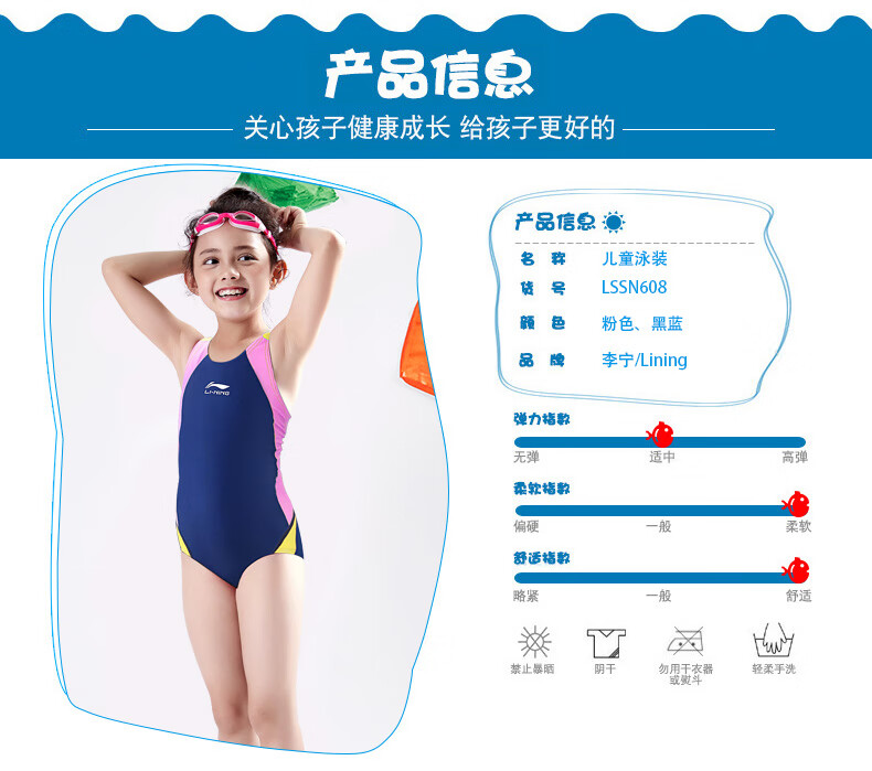 李宁(LI-NING)儿童 泳衣 女连体三角训练游泳衣 女童可爱游泳衣608 蓝粉 150