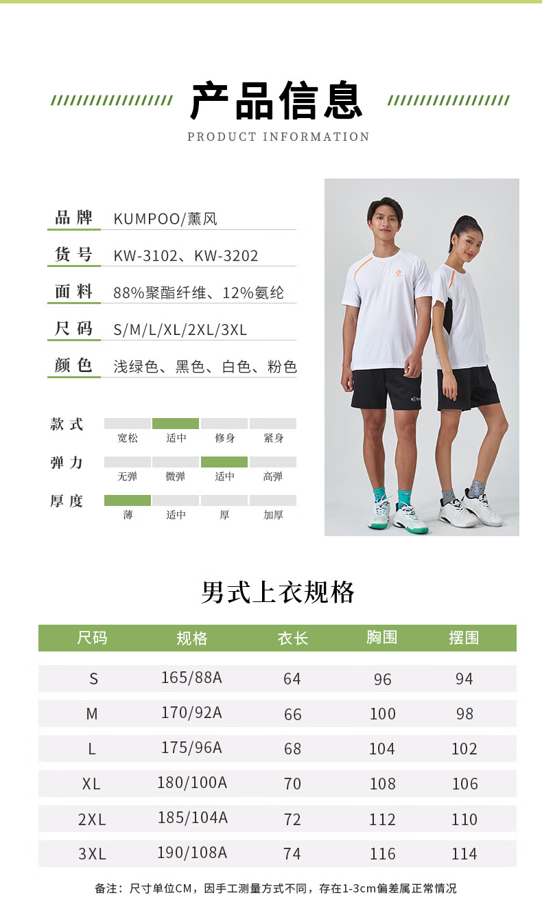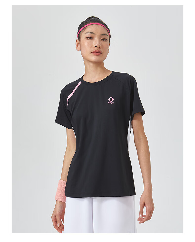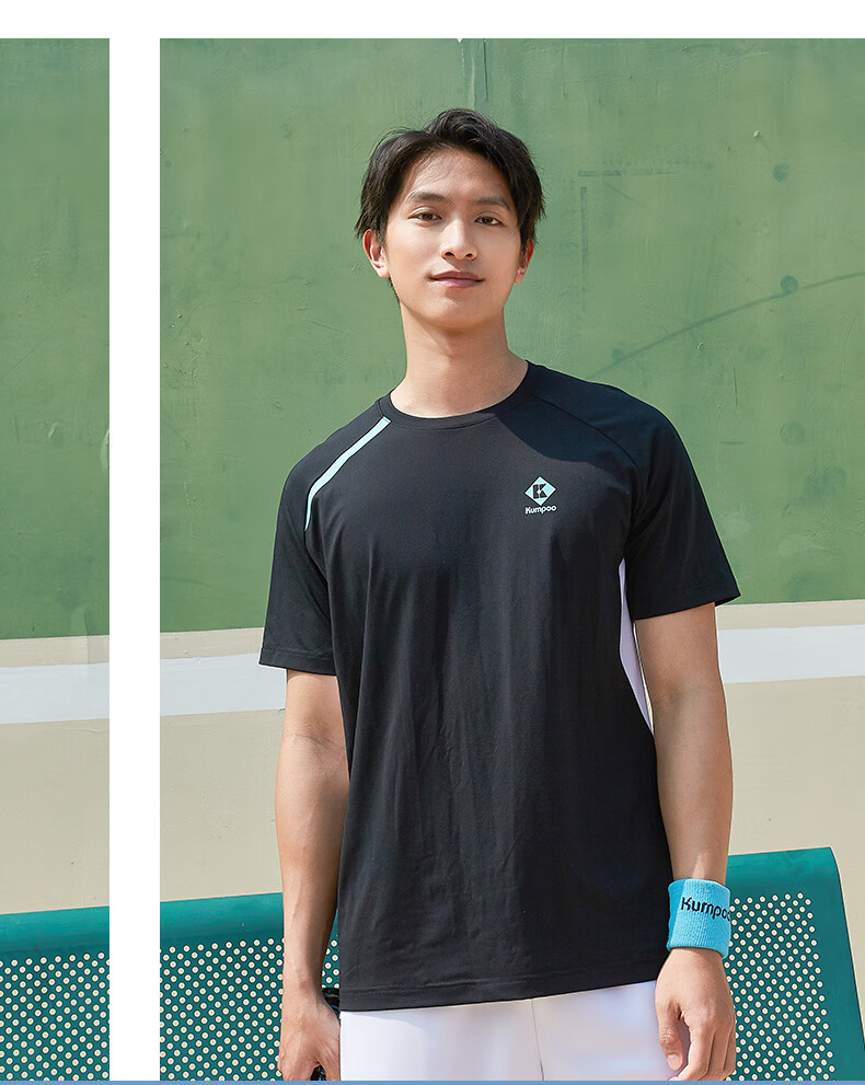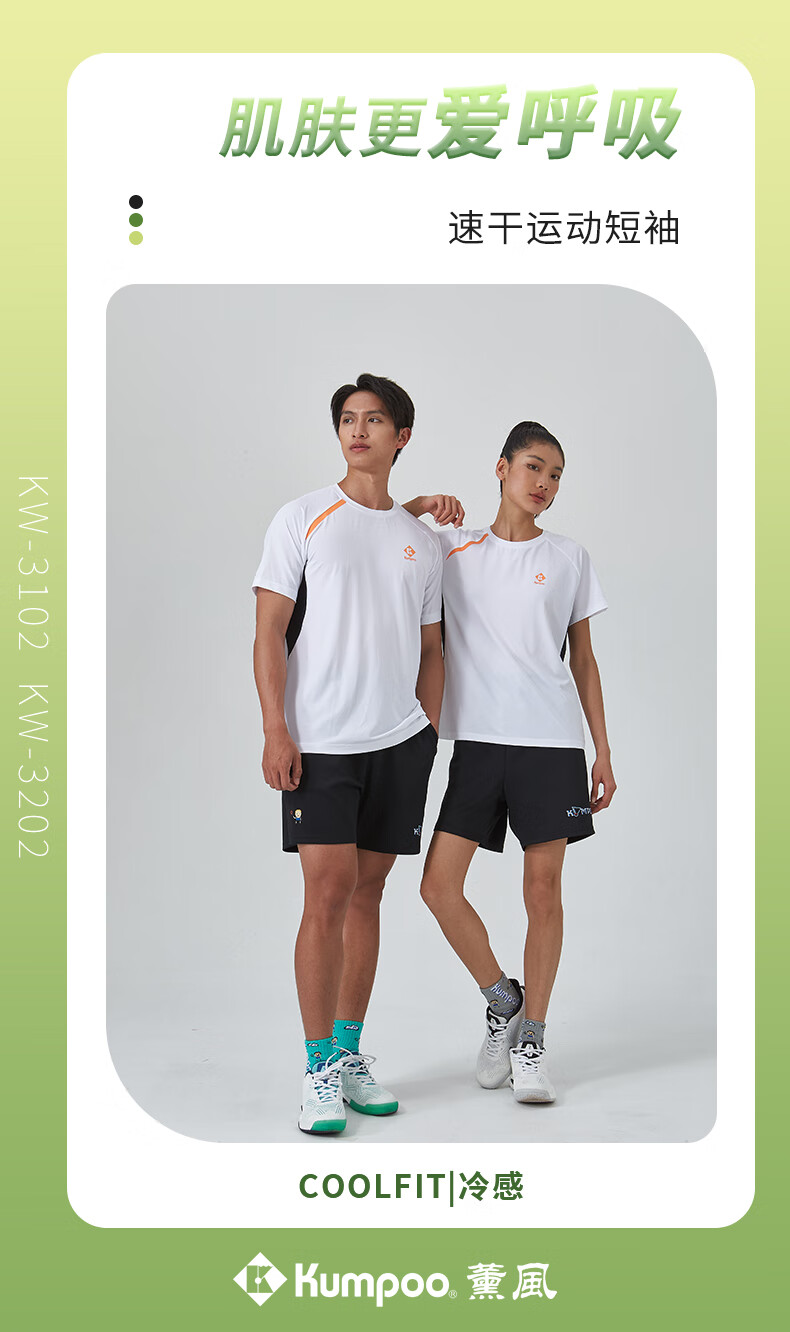 薰风(KUMPOO)羽毛球服速干透气宽松舒适熏风比赛球服短袖KW-3102 黑色 M