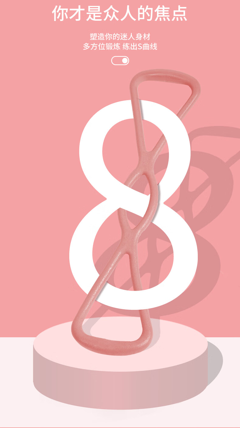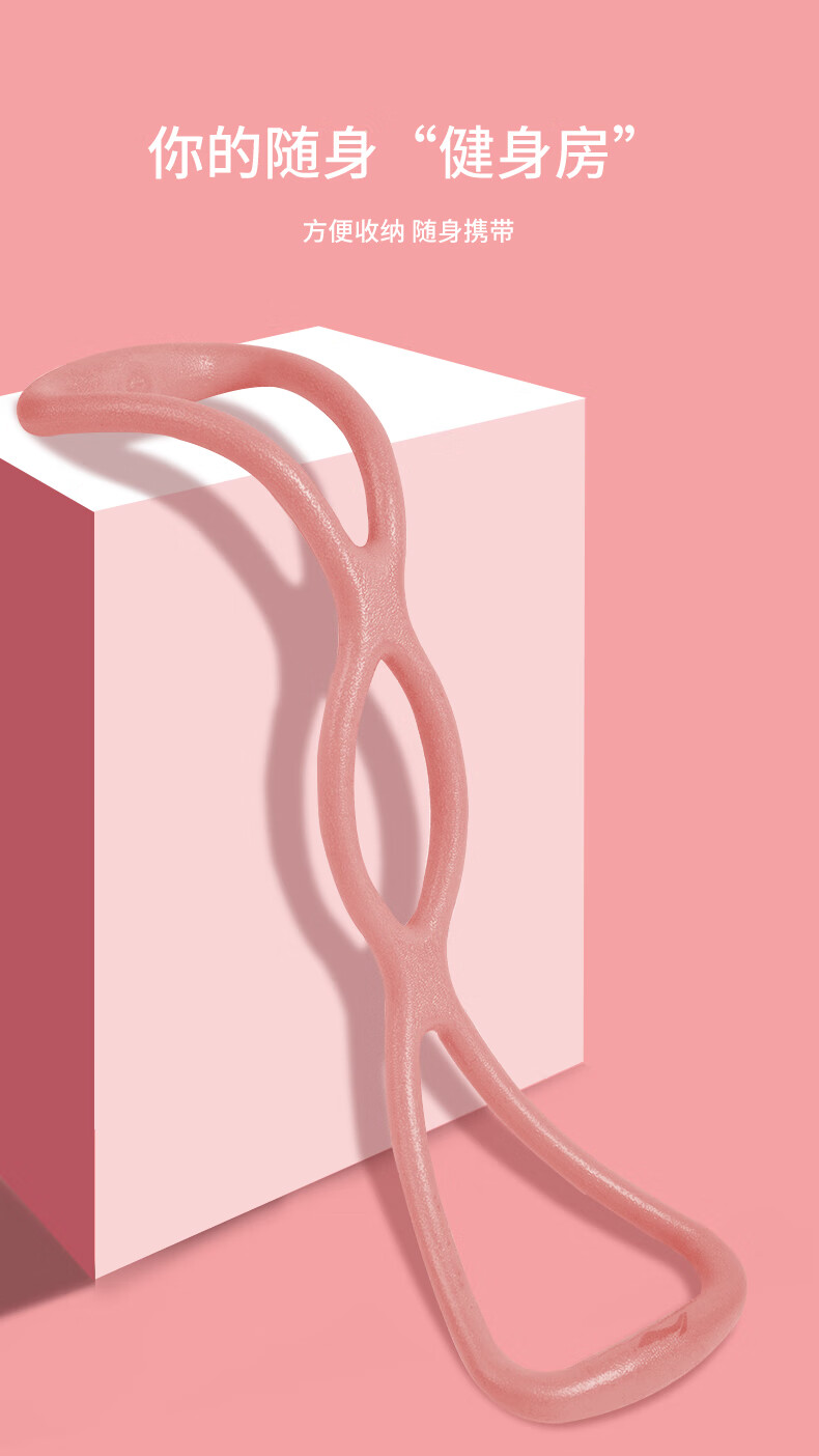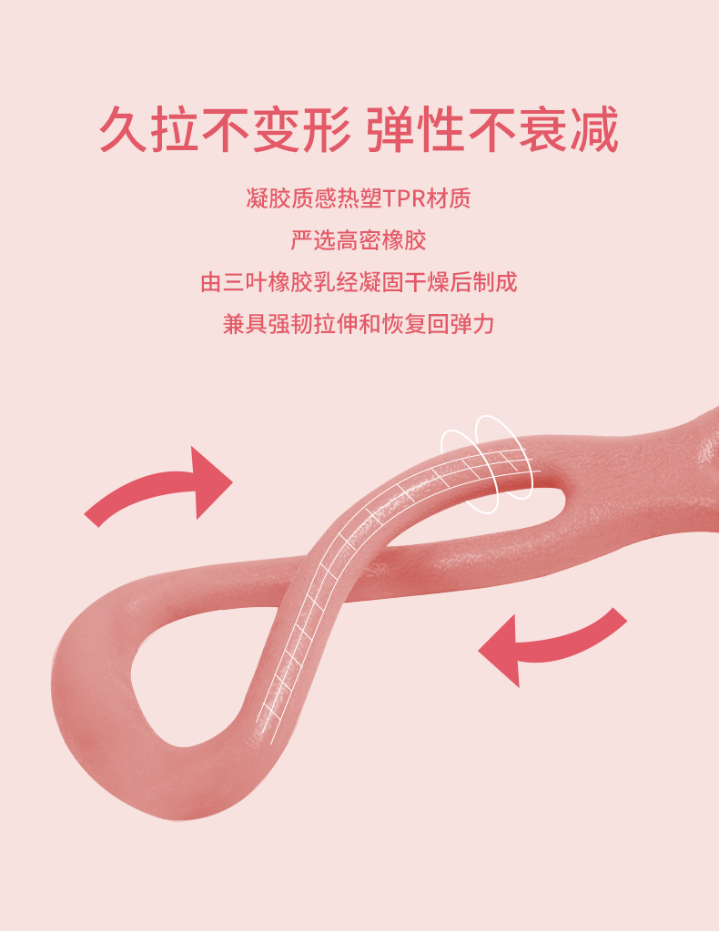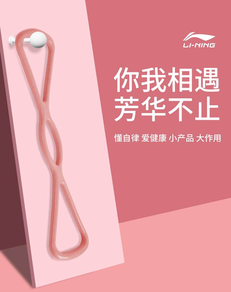 李宁 LI-NING 8字拉力器普拉提拉力绳弹力带拉伸带背部训练臂力辅助开背女家用锻炼健身器材LJSQ558-2粉色