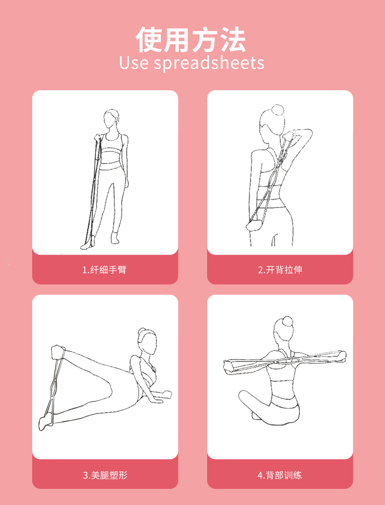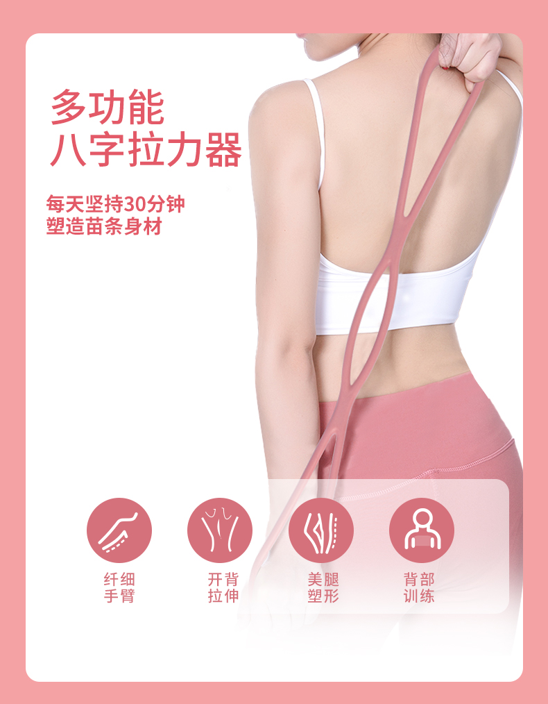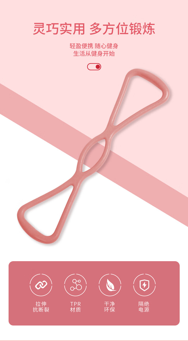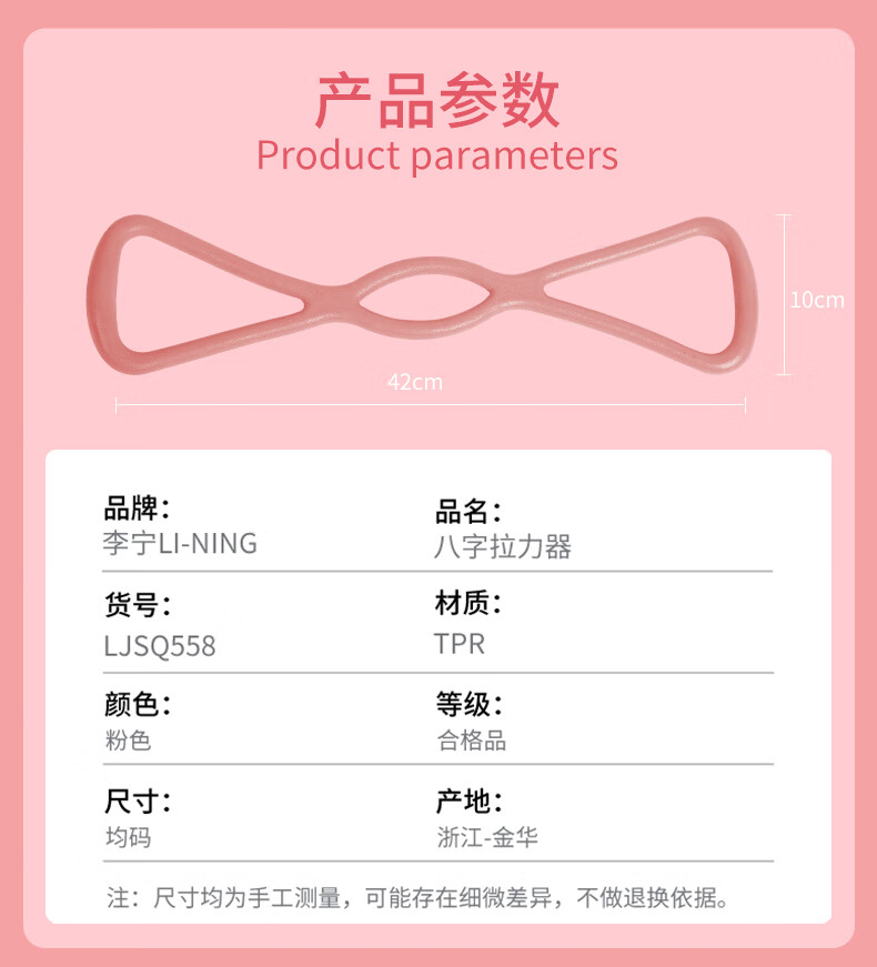 李宁 LI-NING 8字拉力器普拉提拉力绳弹力带拉伸带背部训练臂力辅助开背女家用锻炼健身器材LJSQ558-2粉色