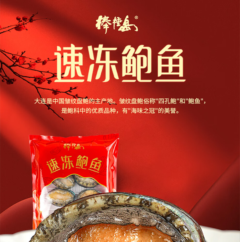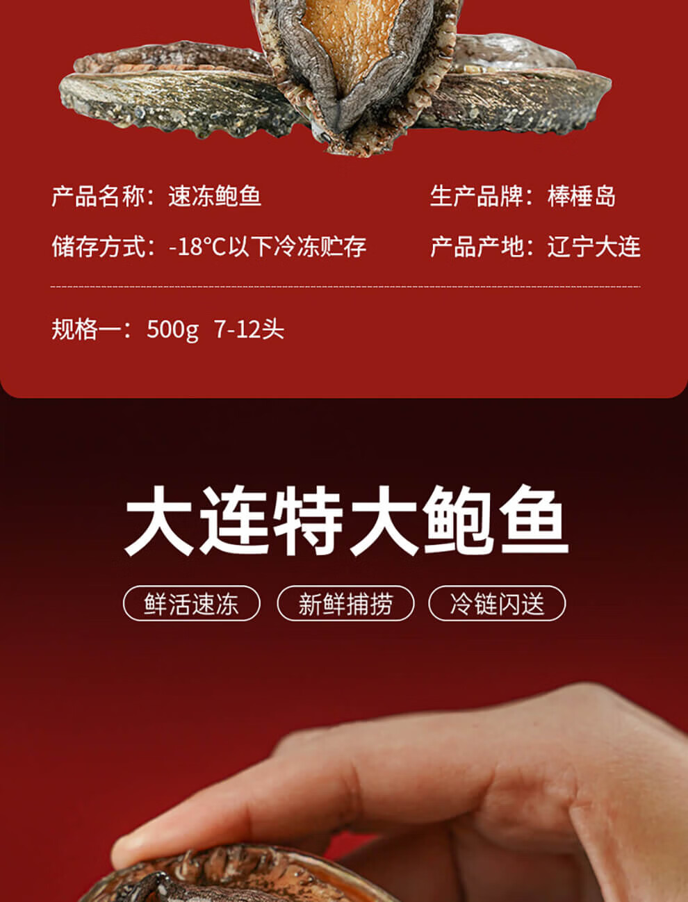 棒棰岛 大连冷冻大鲍鱼 500g 7-12头 火锅食材 海鲜水产 生鲜