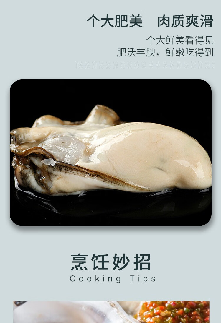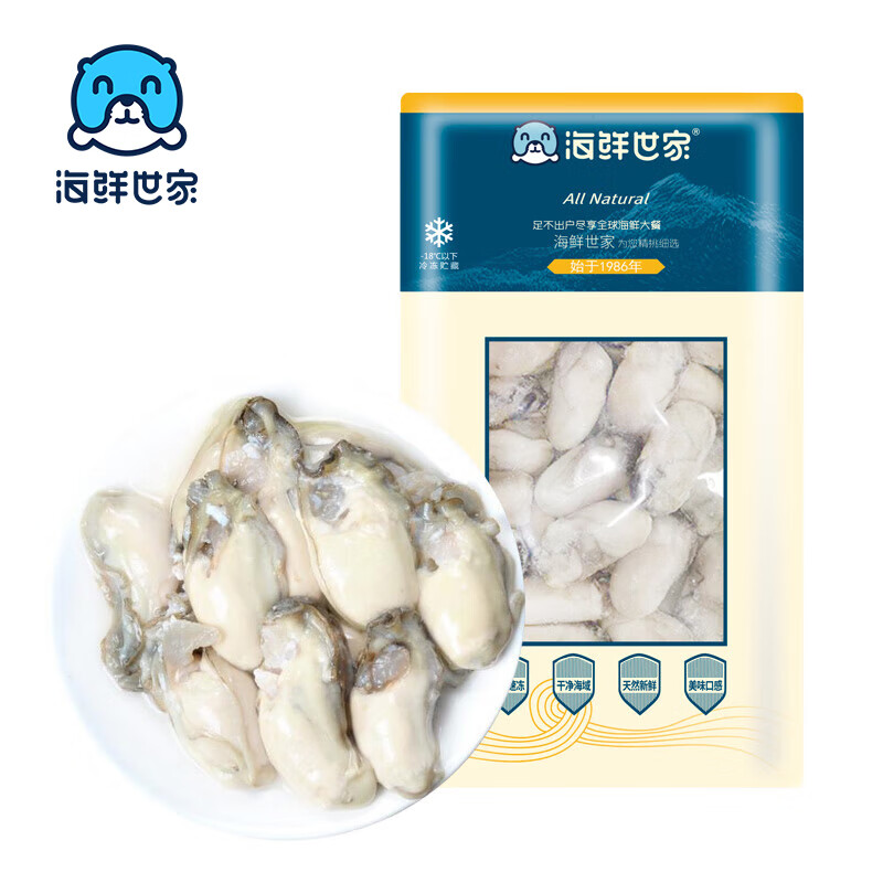 海鲜世家 冷冻生蚝肉(大号牡蛎肉) 1kg 65-70只/袋 火锅烧烤食材 方便菜