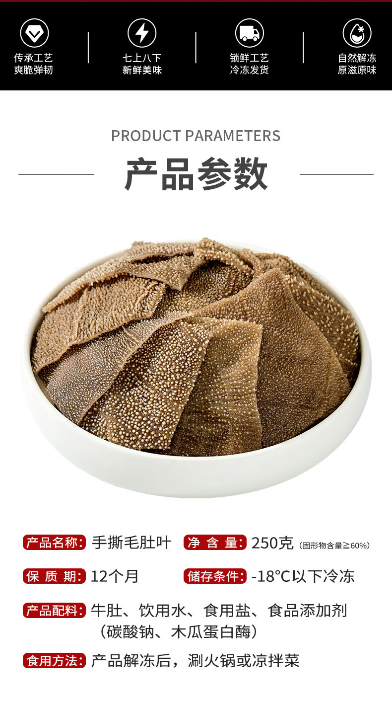 百里炙 手撕毛肚叶250g 牛百叶牛肚千层肚黑毛肚片 四川火锅食材涮锅