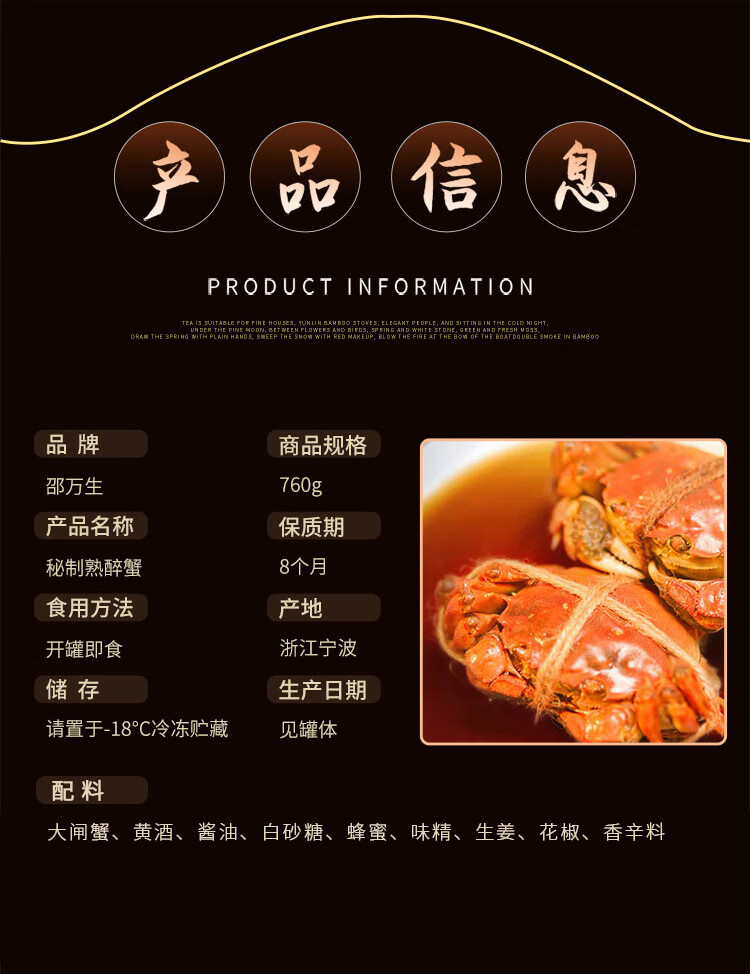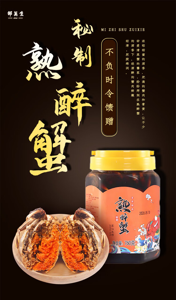邵万生 熟醉蟹760g 上海特产邵万生花雕红膏大闸蟹花雕醉蟹宁波风味