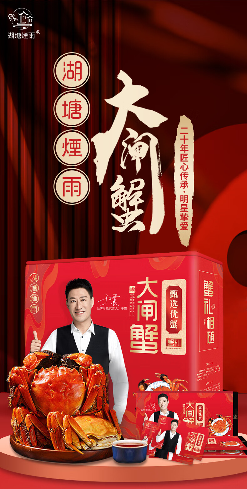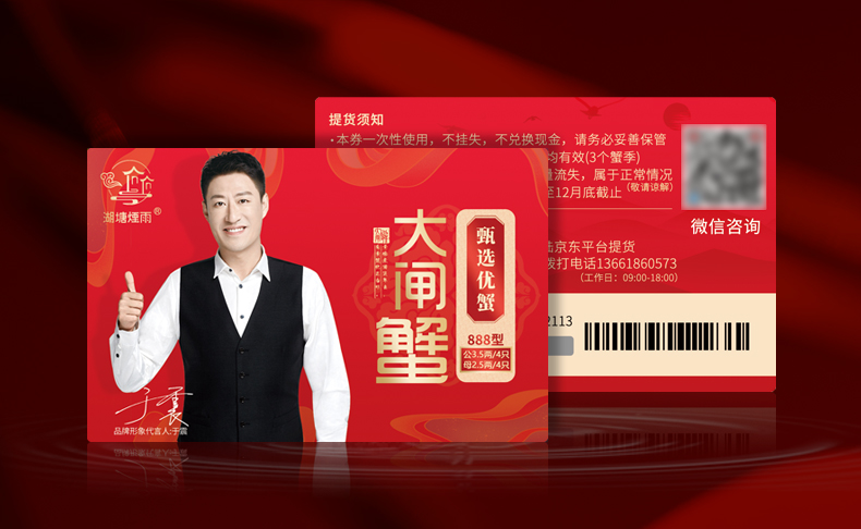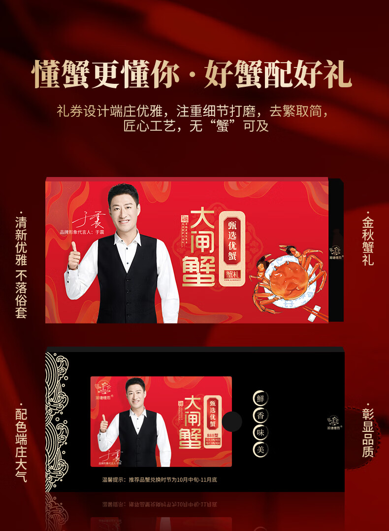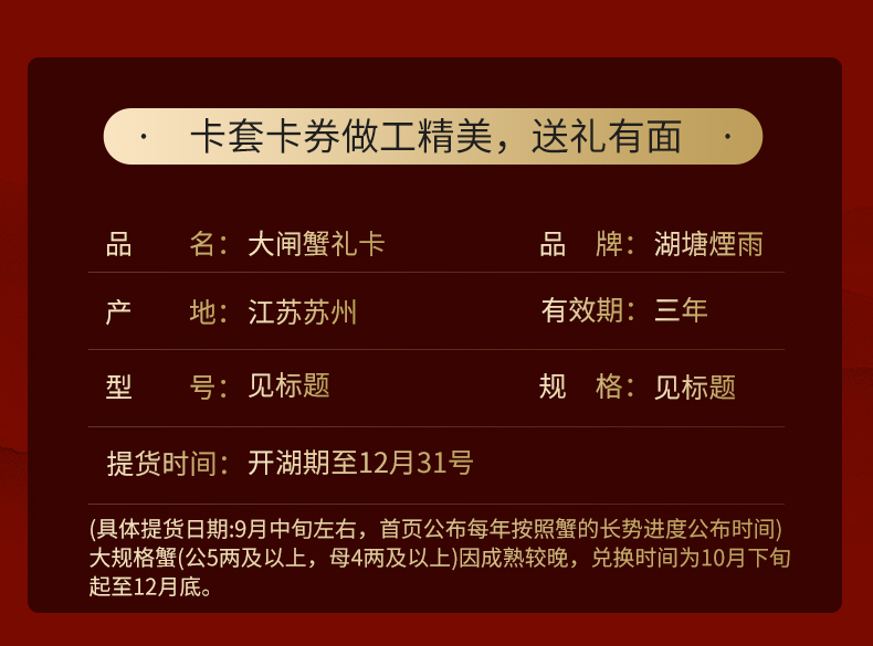 【礼券】湖塘烟雨 大闸蟹礼券3888型公5.0两/只 母4.0两/只 4对螃蟹卡券礼品盒