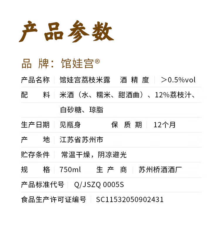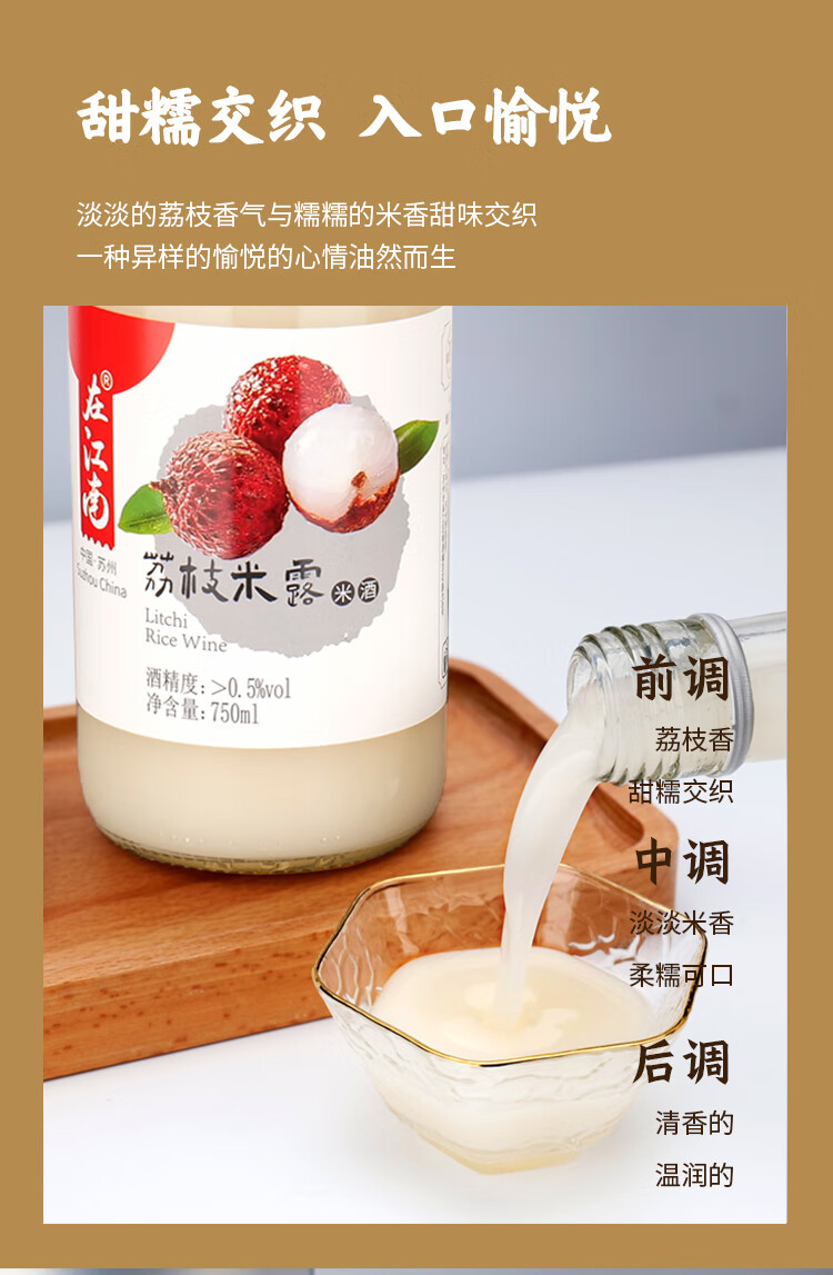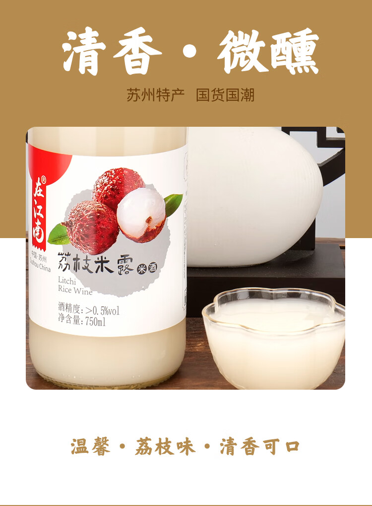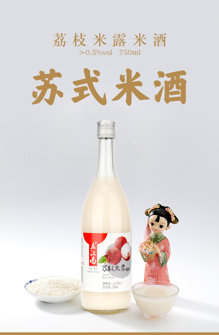 馆娃宫 荔枝米露 在江南米酒 750mL 0.5度 女生酒 发酵甜酒米酿