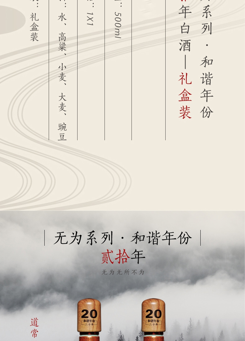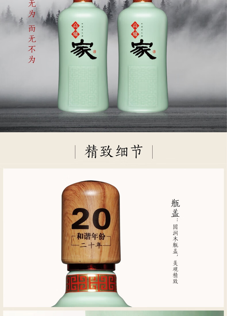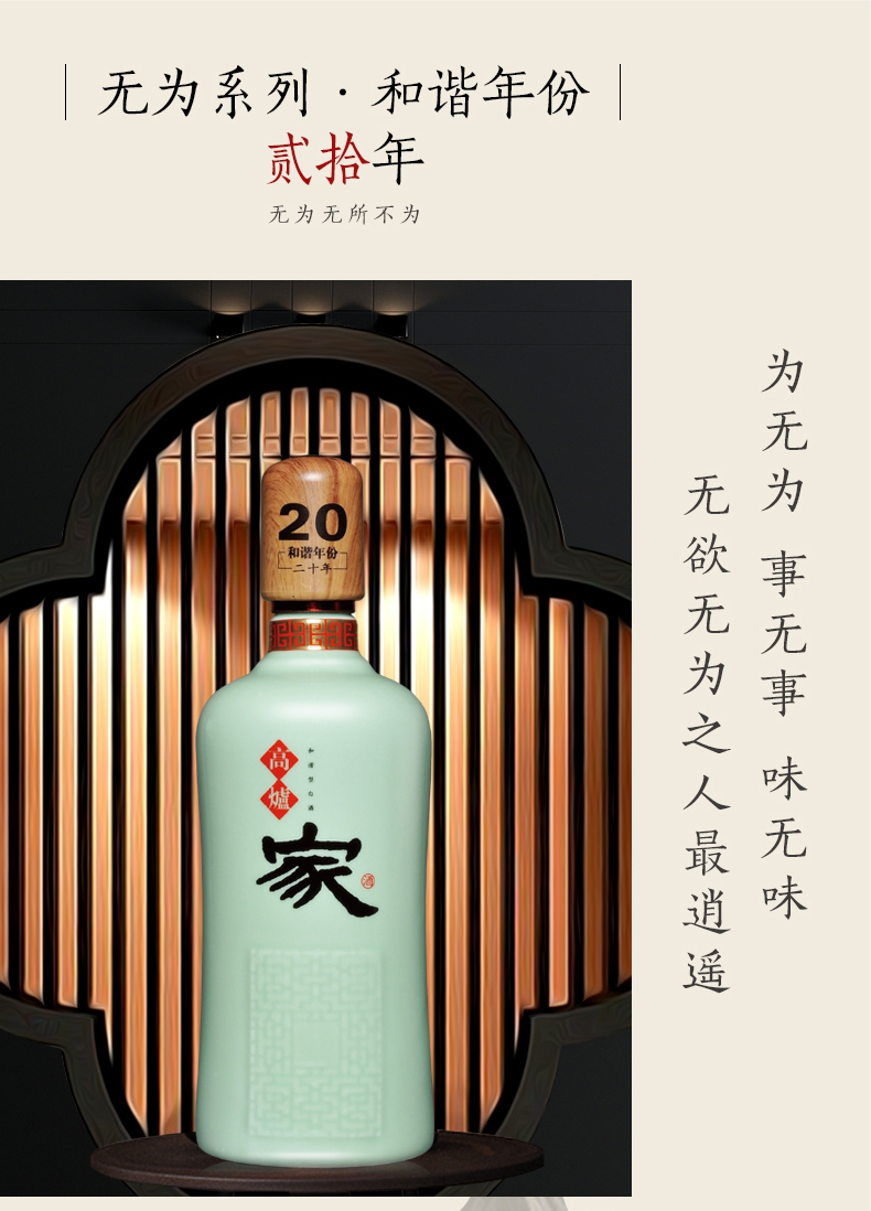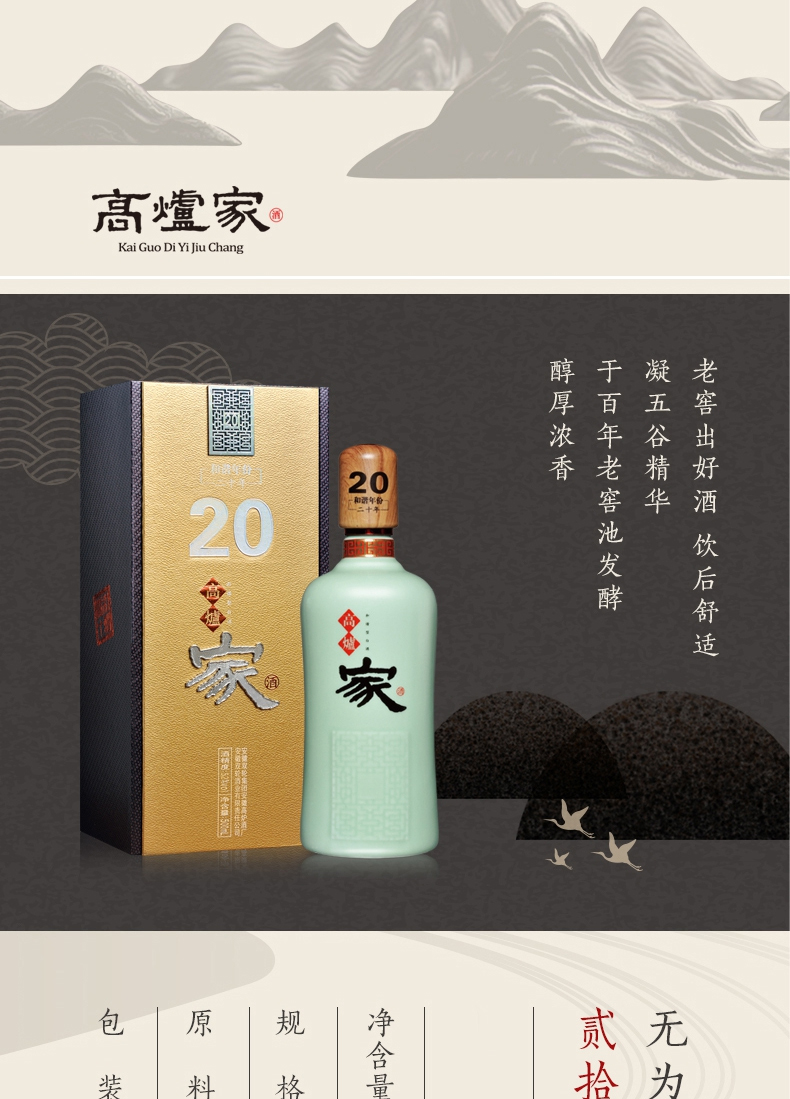 高炉家酒 白酒 无为系列 43度500ml 高炉和谐年份20年 单瓶装 企业定制 不支持零售