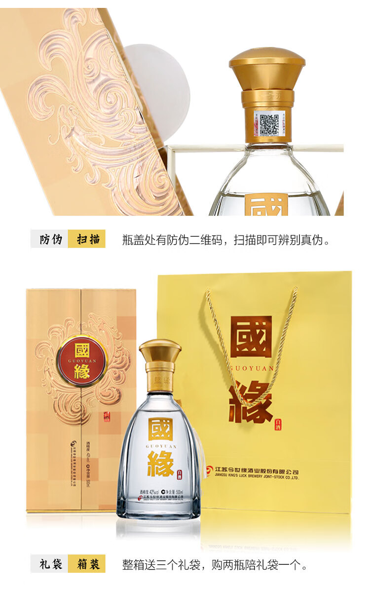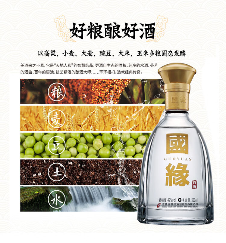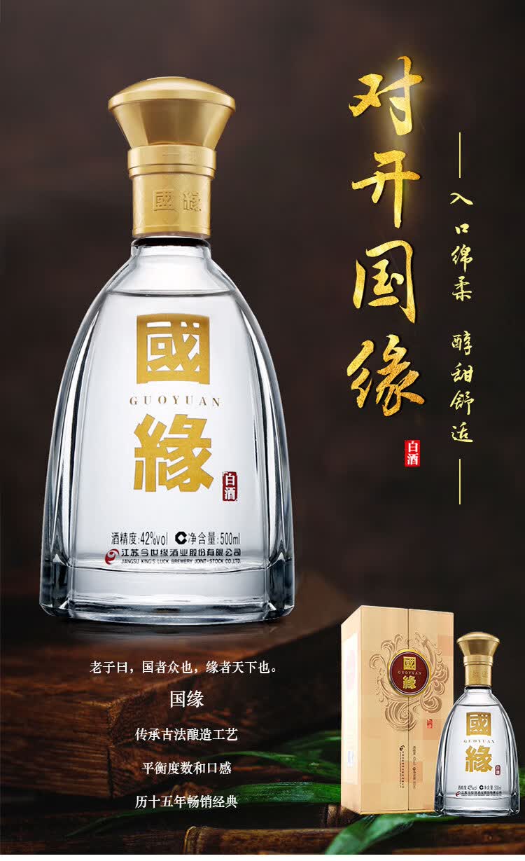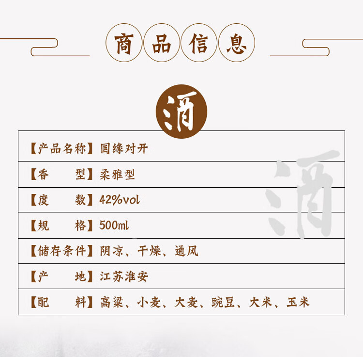 今世缘 白酒 国缘对开 双开 柔雅型白酒 42度 500ml 单瓶装